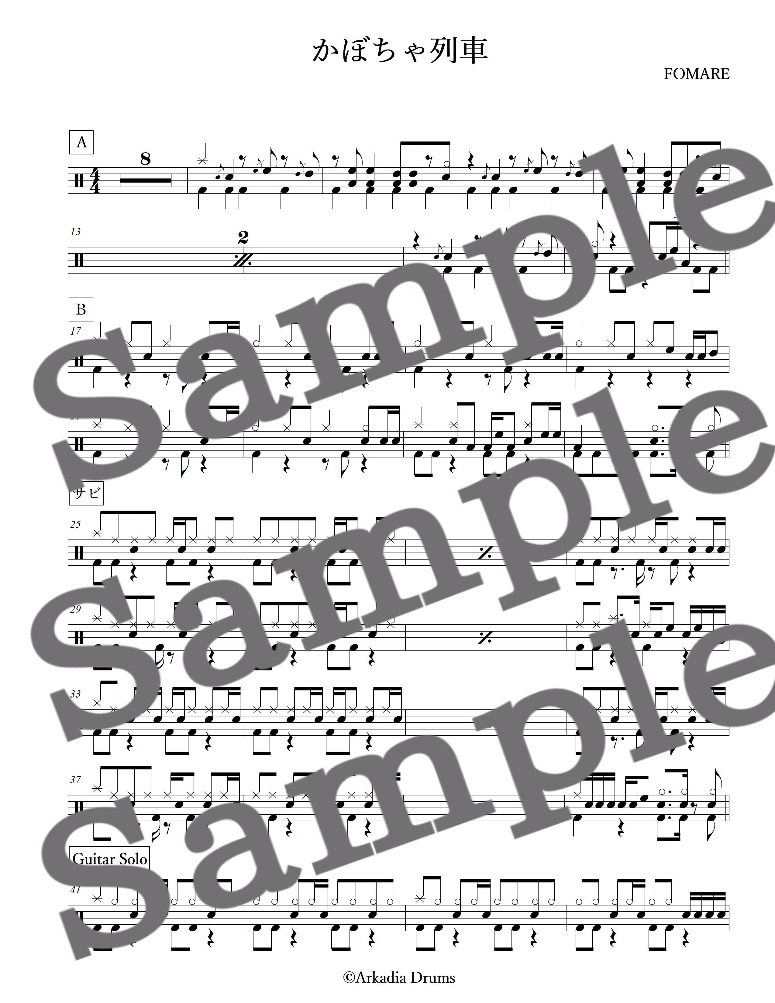 かぼちゃ列車(FOMARE)のドラム楽譜です。