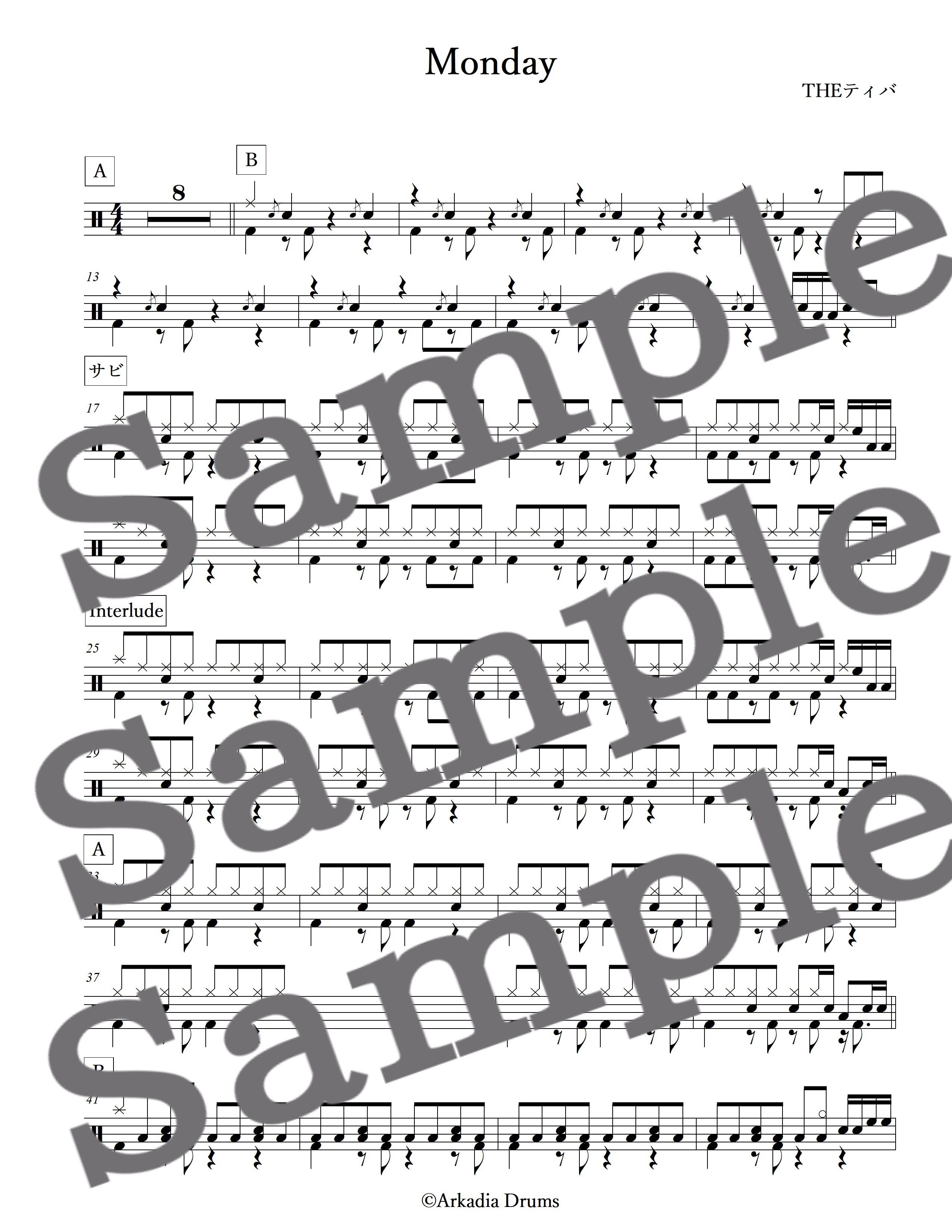 ドラムのみの楽譜であること、また大きめのセクションマークを配置しているので、演奏中でも迷いにくいのが特徴です。