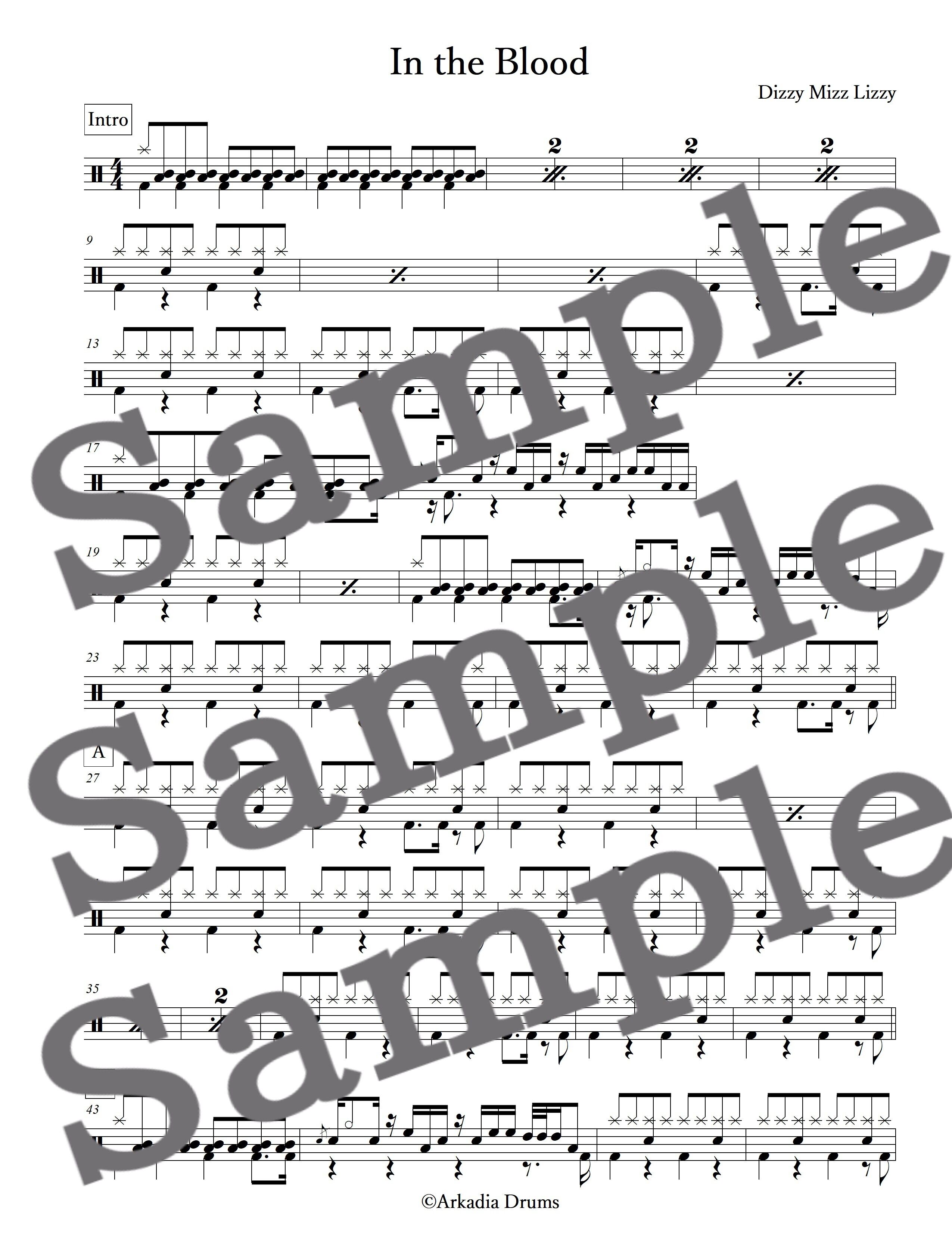 In the Blood(Dizzy Mizz Lizzy)のドラム楽譜です。
