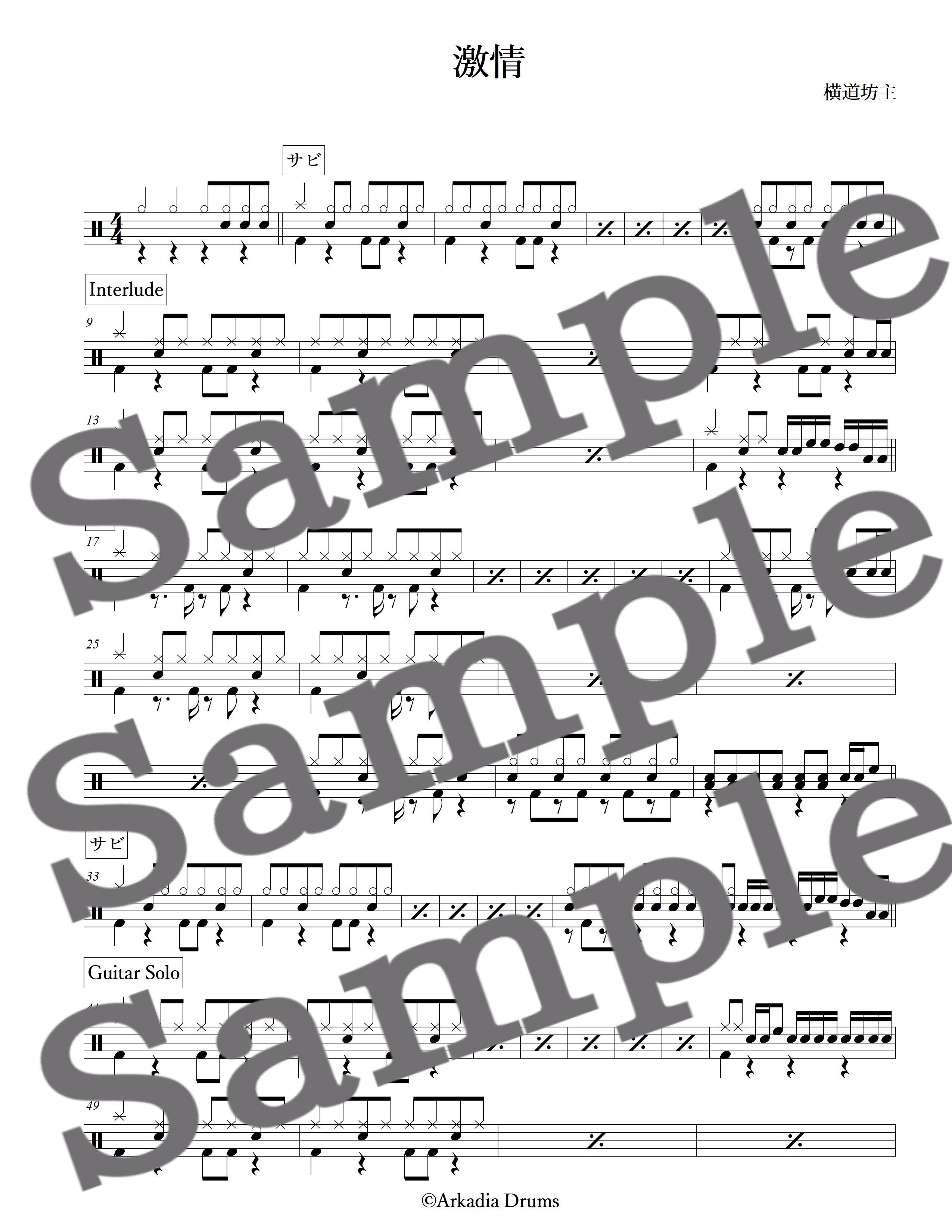 激情 (Live ver.)(横道坊主)簡単アレンジバージョンのドラム楽譜です。