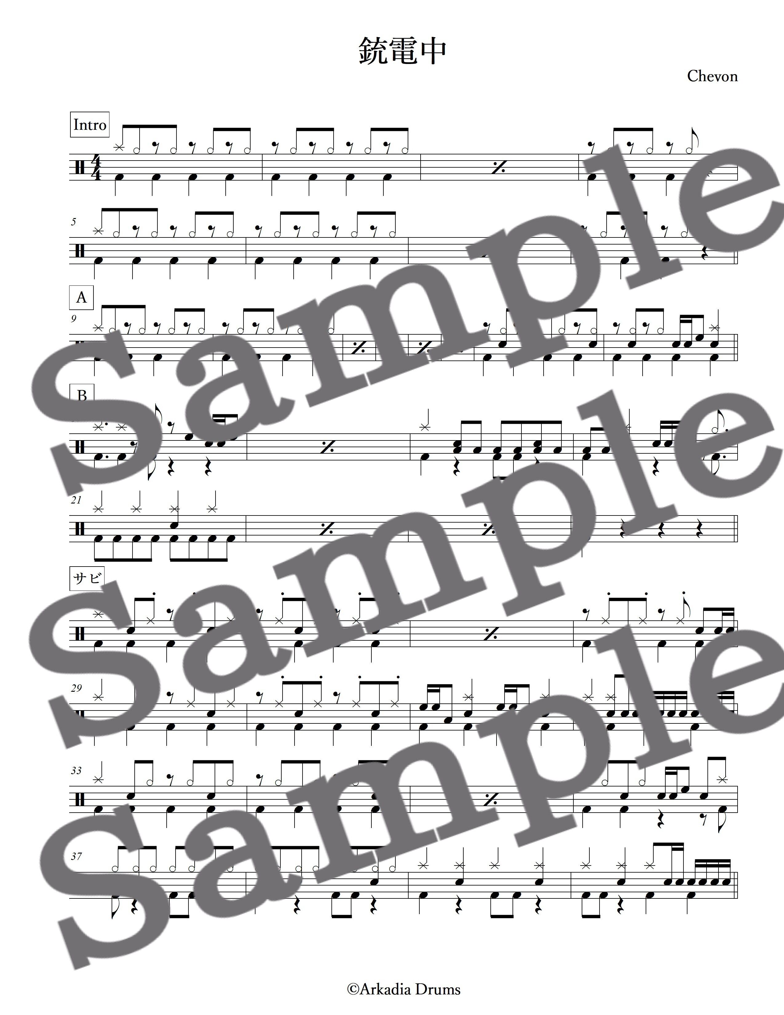 銃電中(Chevon)簡単アレンジバージョンのドラム楽譜です。