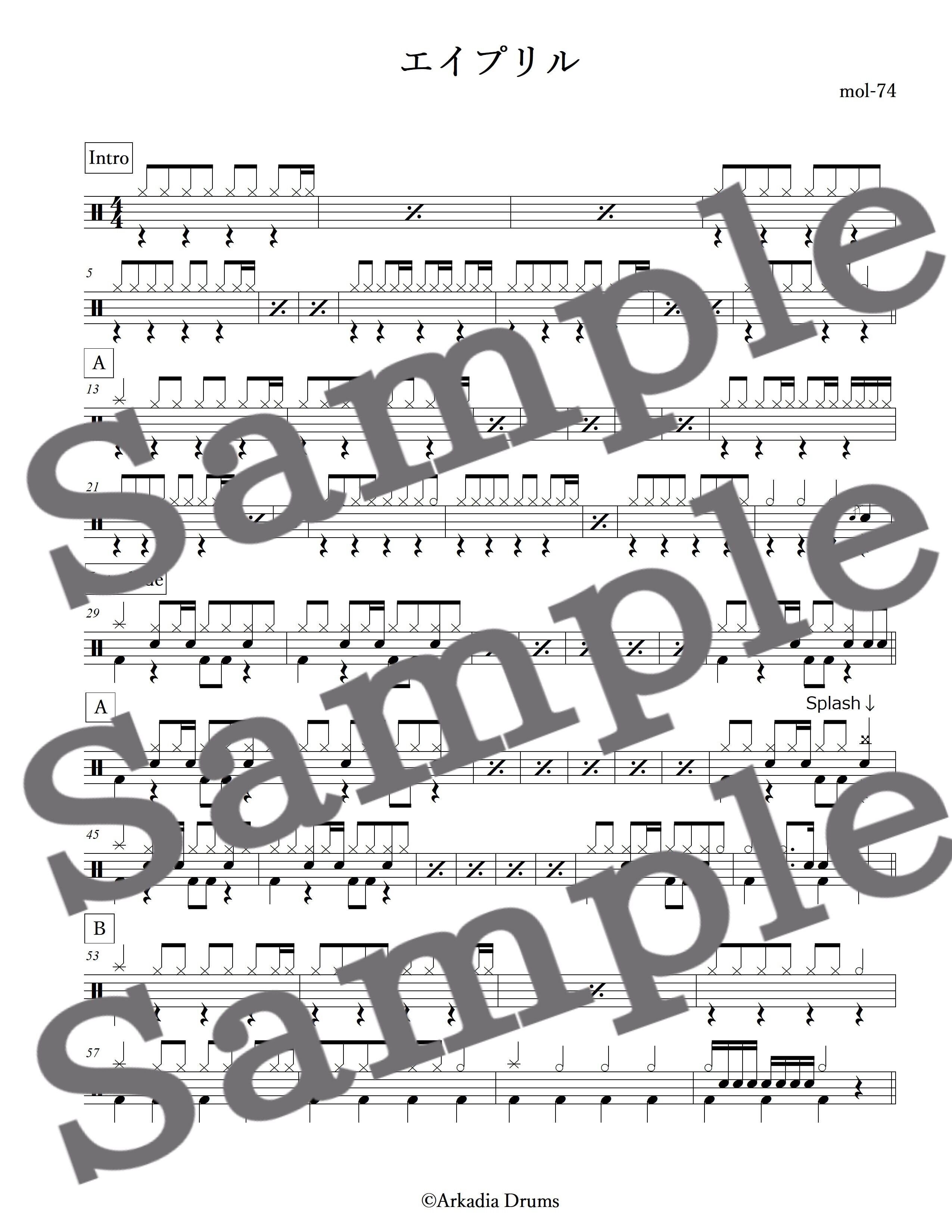 ドラムのみの楽譜であること、また大きめのセクションマークを配置しているので、演奏中でも迷いにくいのが特徴です。