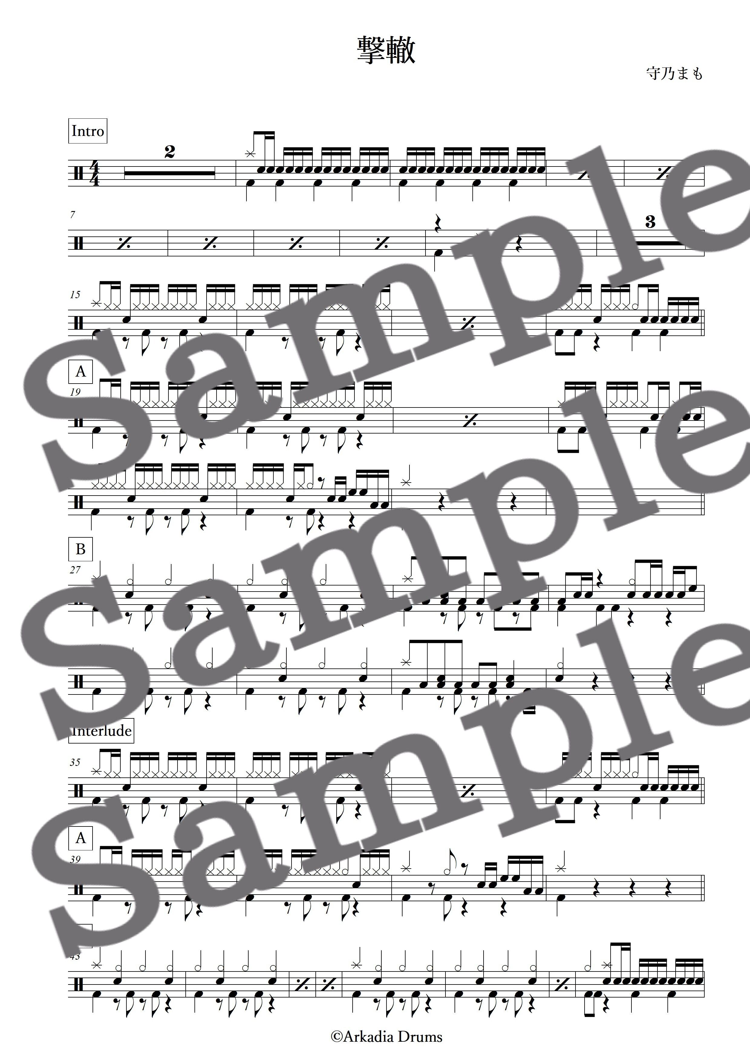 ドラムのみの楽譜であること、また大きめのセクションマークを配置しているので、演奏中でも迷いにくいのが特徴です。