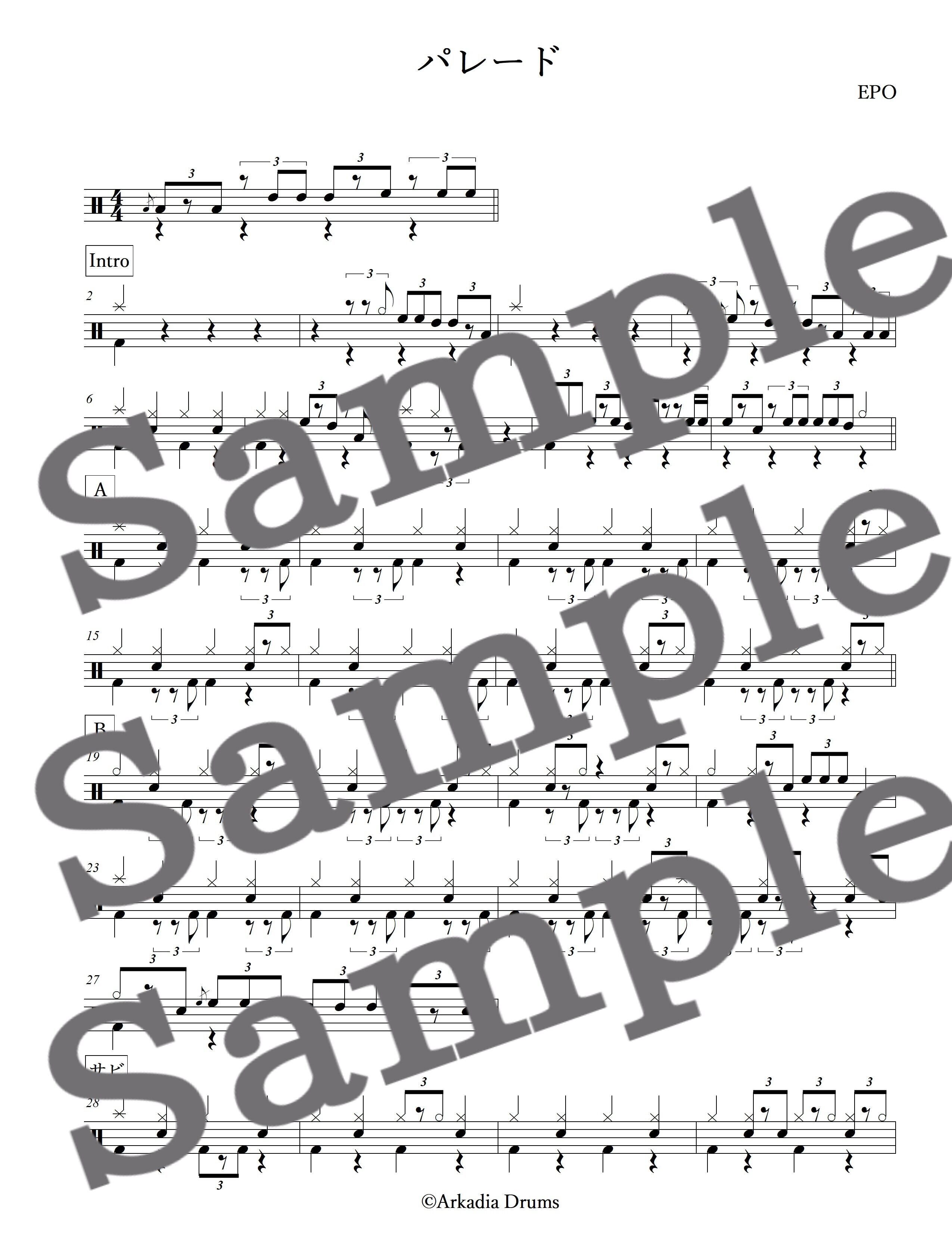 ドラムのみの楽譜であること、また大きめのセクションマークを配置しているので、演奏中でも迷いにくいのが特徴です。