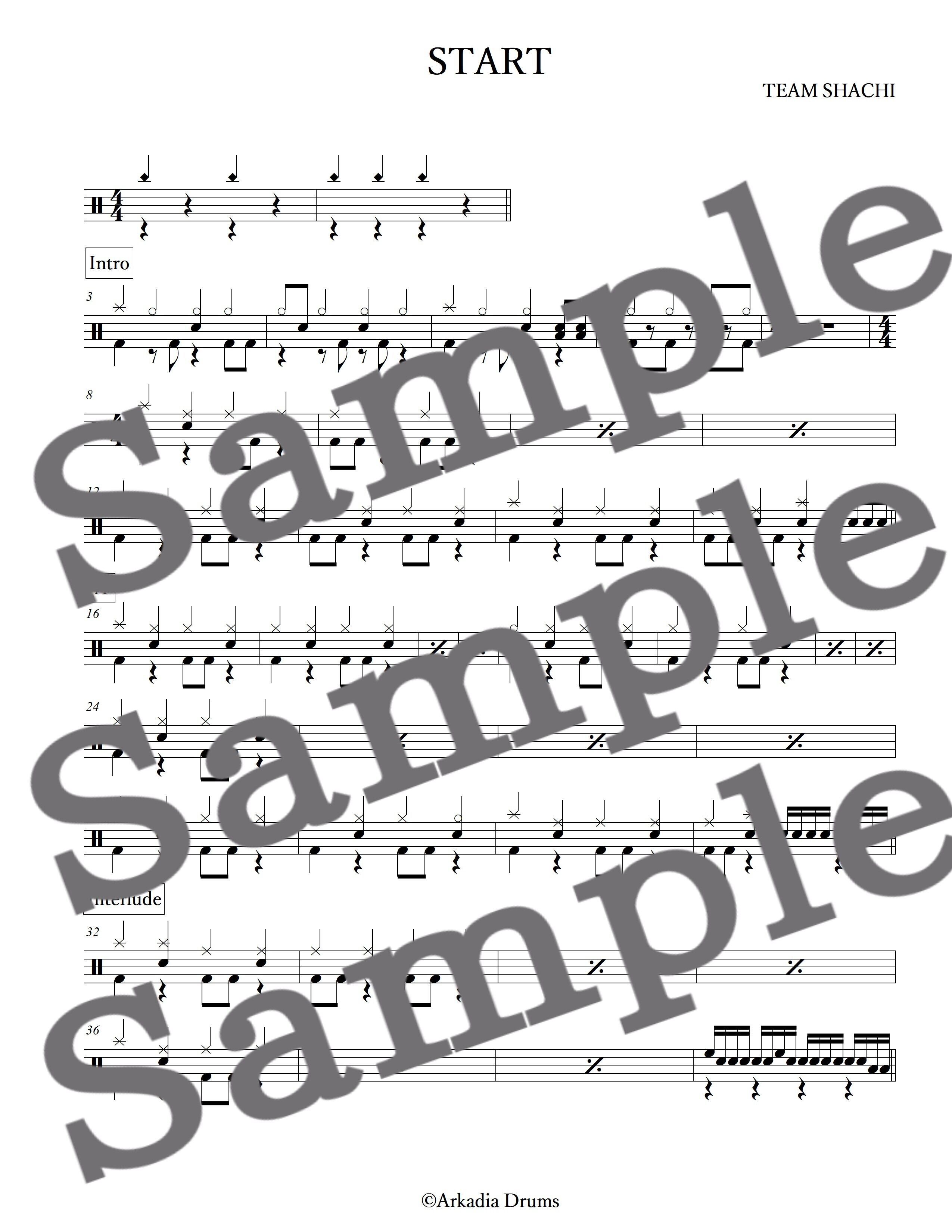 ドラムのみの楽譜であること、また大きめのセクションマークを配置しているので、演奏中でも迷いにくいのが特徴です。