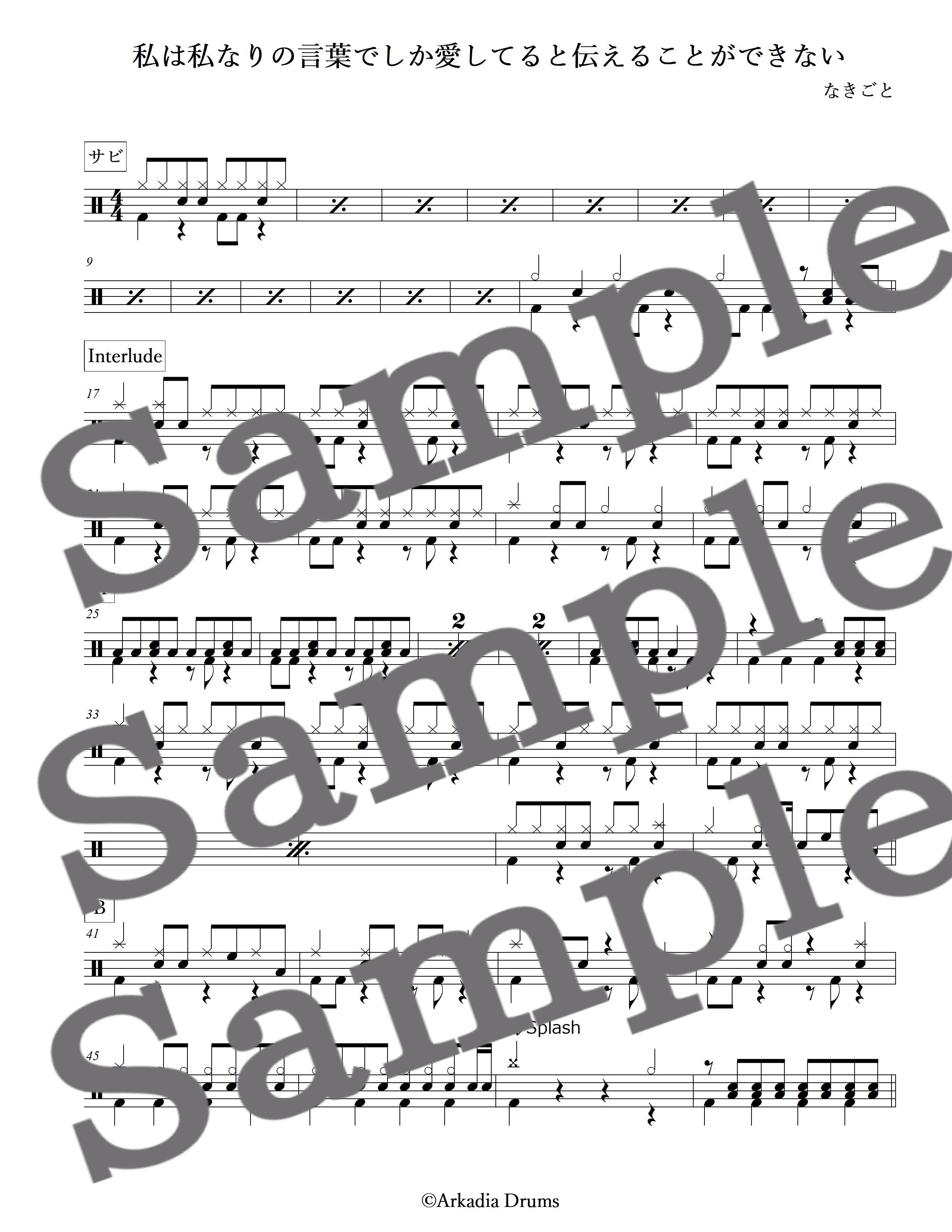 私は私なりの言葉でしか愛してると伝えることができない(なきごと)のドラム楽譜です。