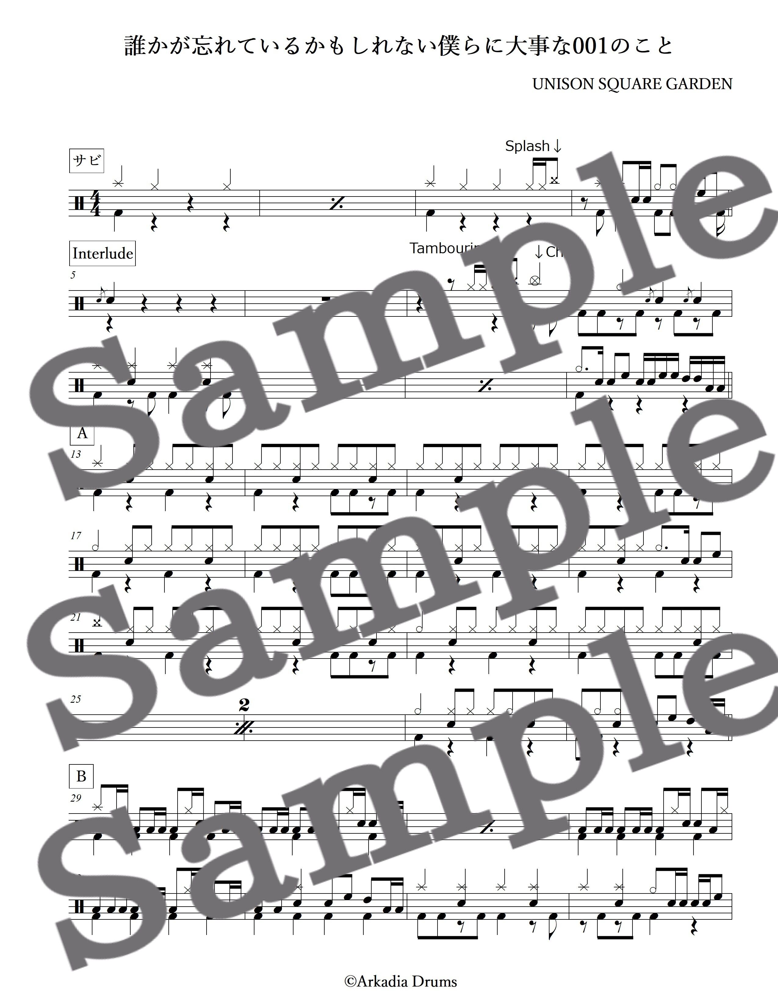 誰かが忘れているかもしれない僕らに大事な001のこと(UNISON SQUARE GARDEN)のドラム楽譜です。