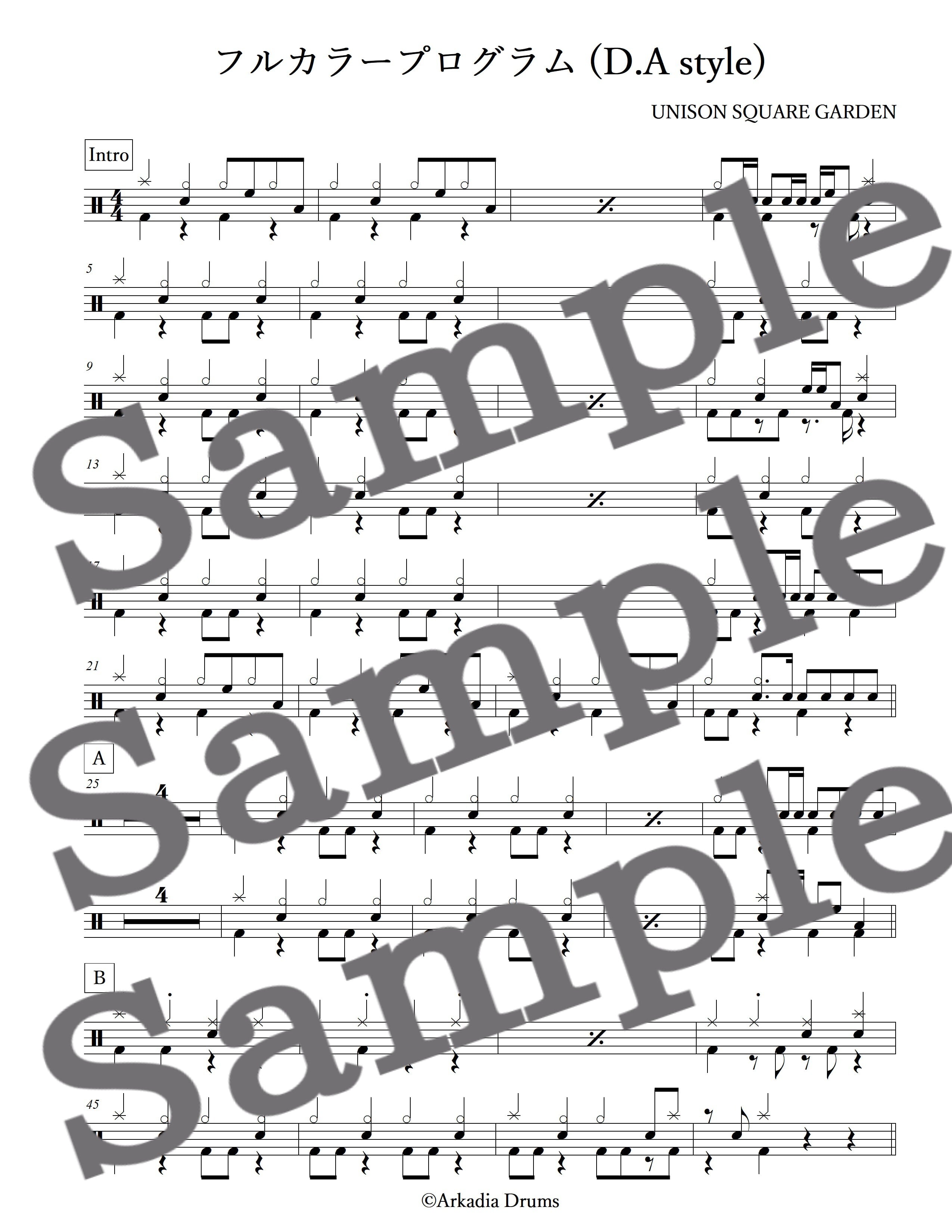 フルカラープログラム (D.A style)(UNISON SQUARE GARDEN)のドラム楽譜です。