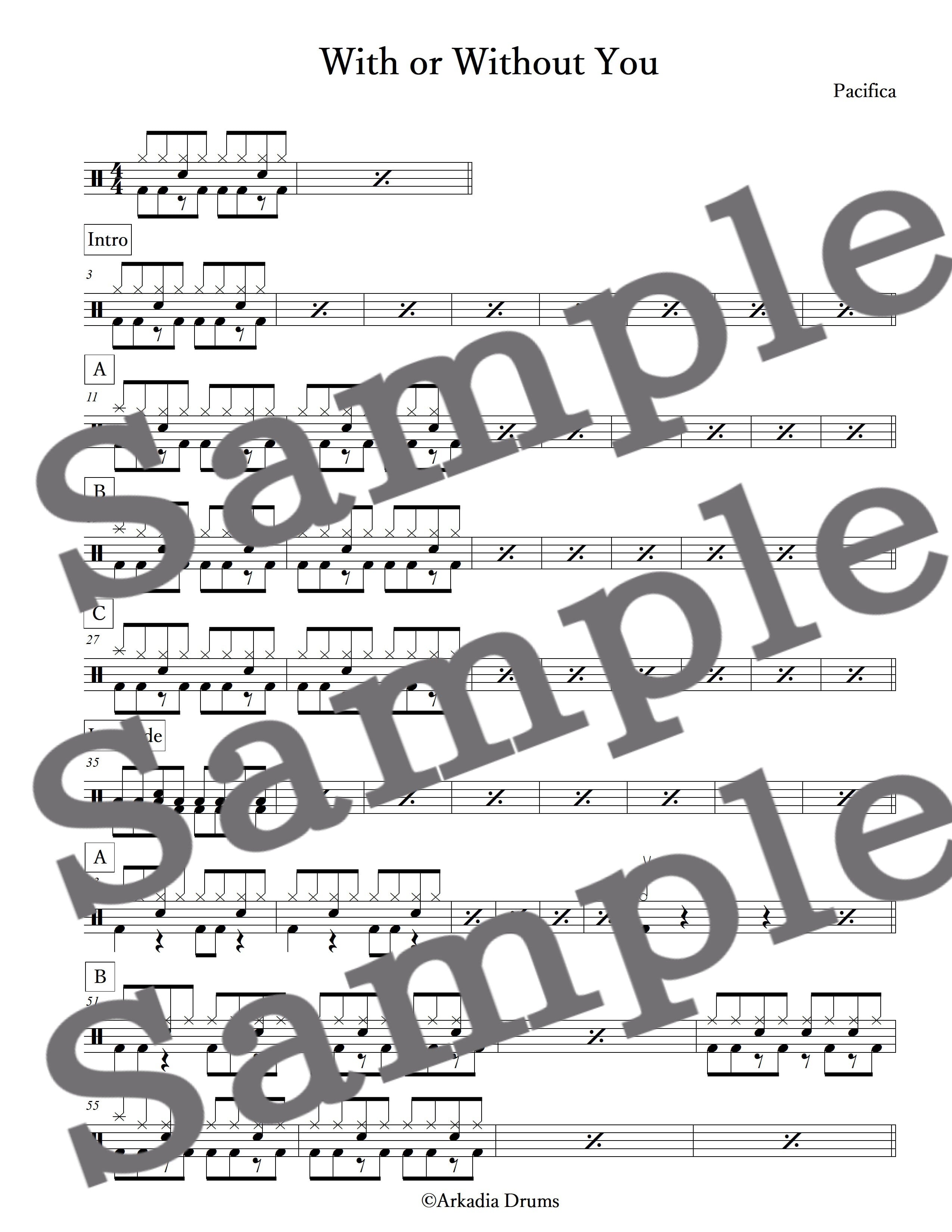 ドラムのみの楽譜であること、また大きめのセクションマークを配置しているので、演奏中でも迷いにくいのが特徴です。