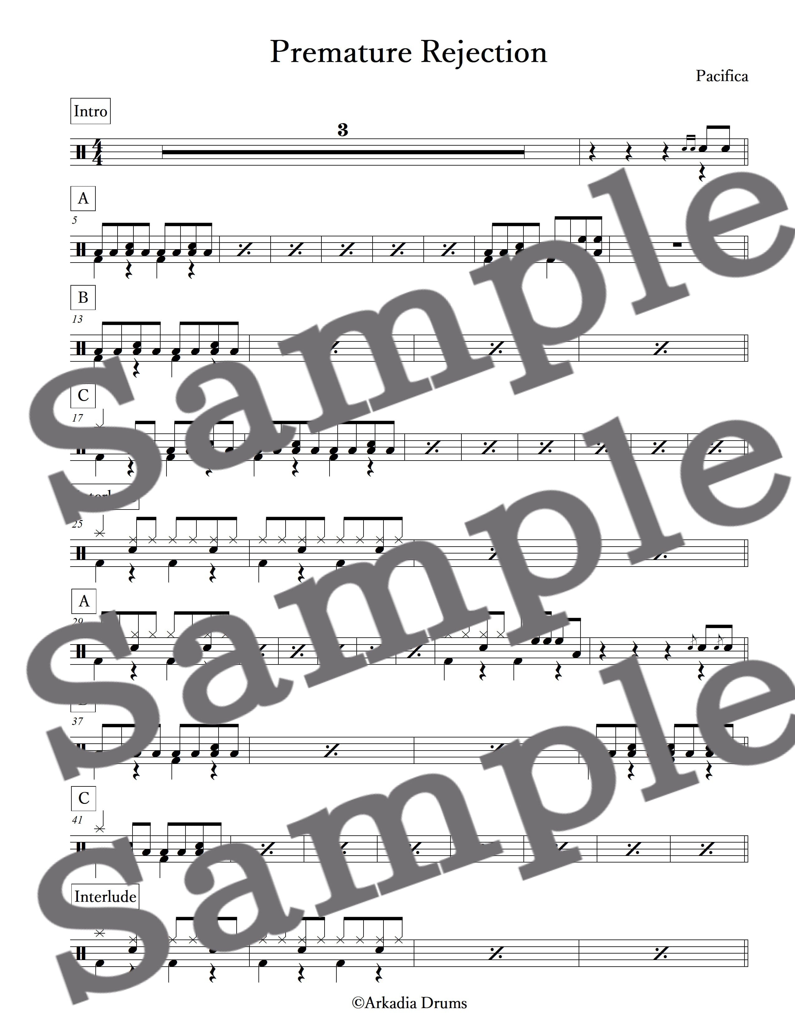 Premature Rejection(Pacifica)のドラム楽譜です。