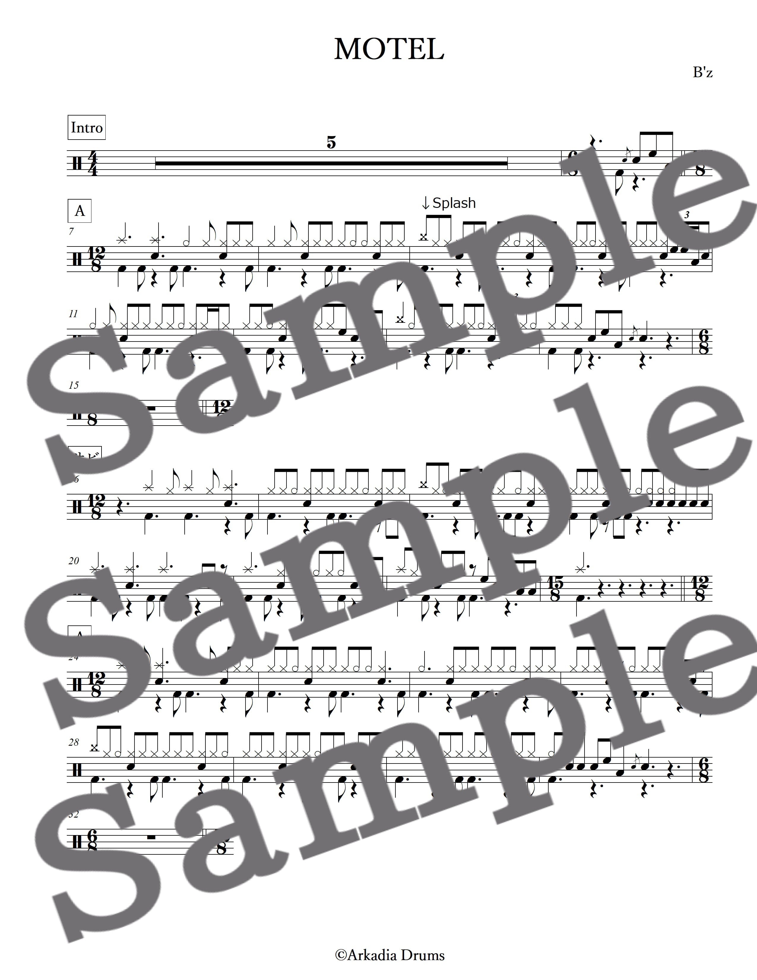 ドラムのみの楽譜であること、また大きめのセクションマークを配置しているので、演奏中でも迷いにくいのが特徴です。
