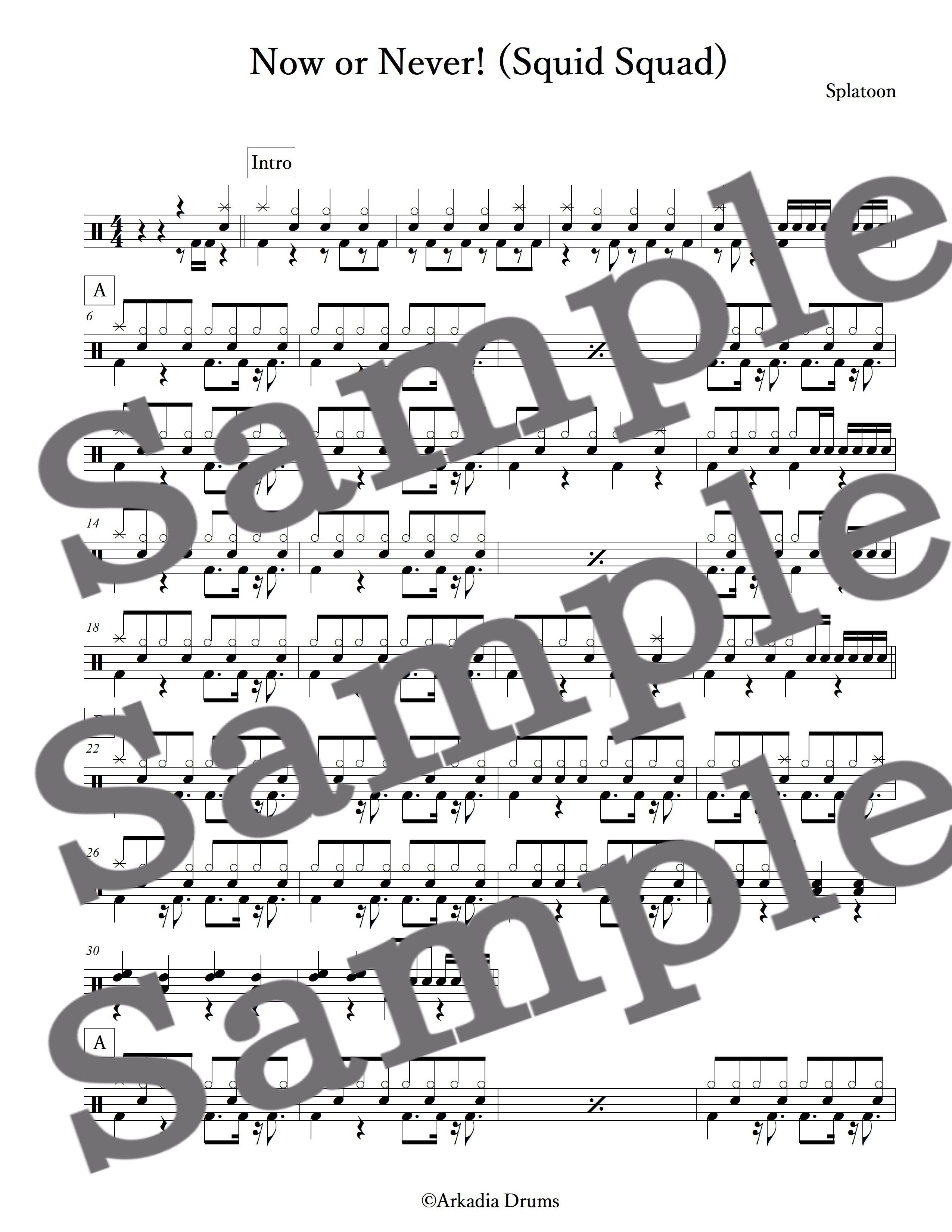 Now or Never! (Squid Squad)(Splatoon)のドラム楽譜です。