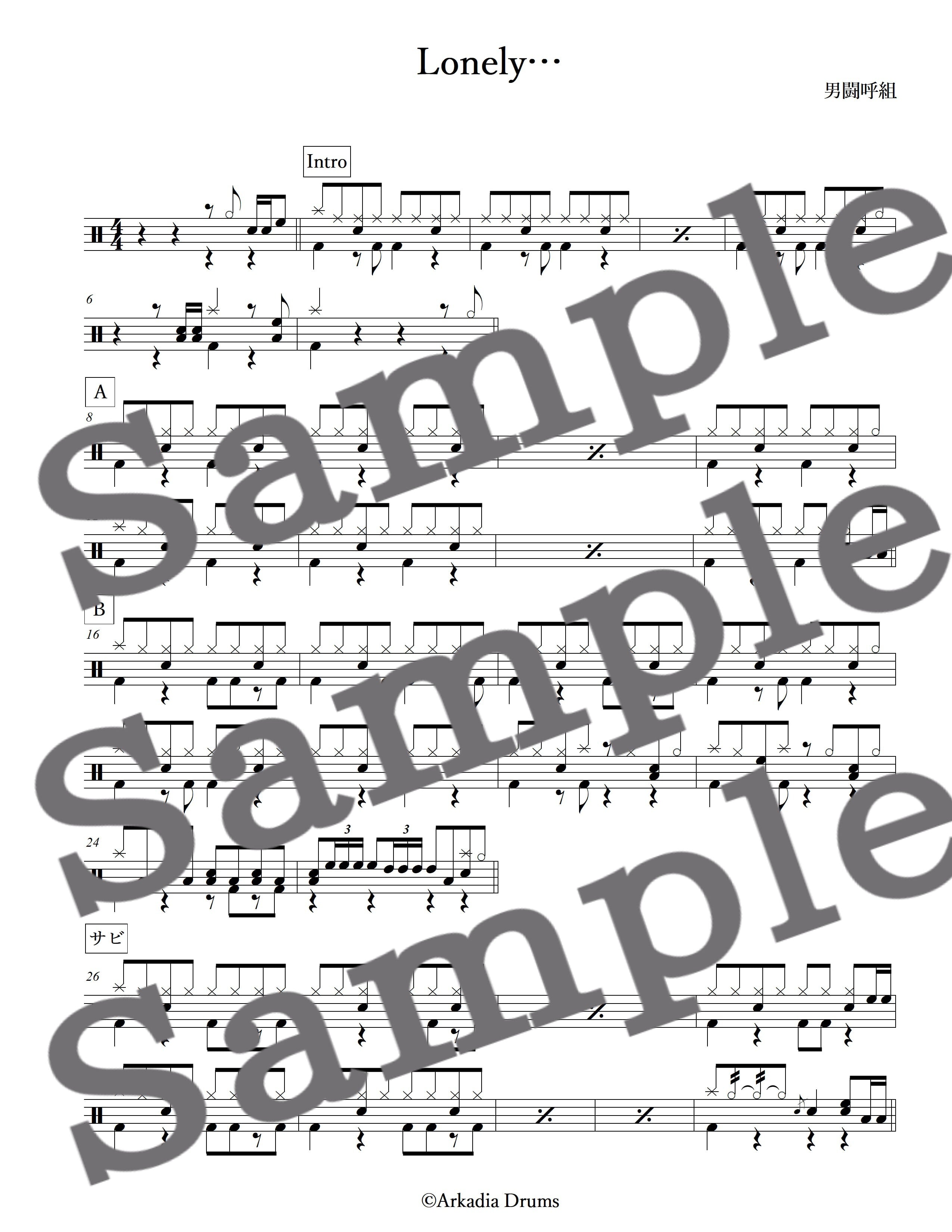 ドラムのみの楽譜であること、また大きめのセクションマークを配置しているので、演奏中でも迷いにくいのが特徴です。