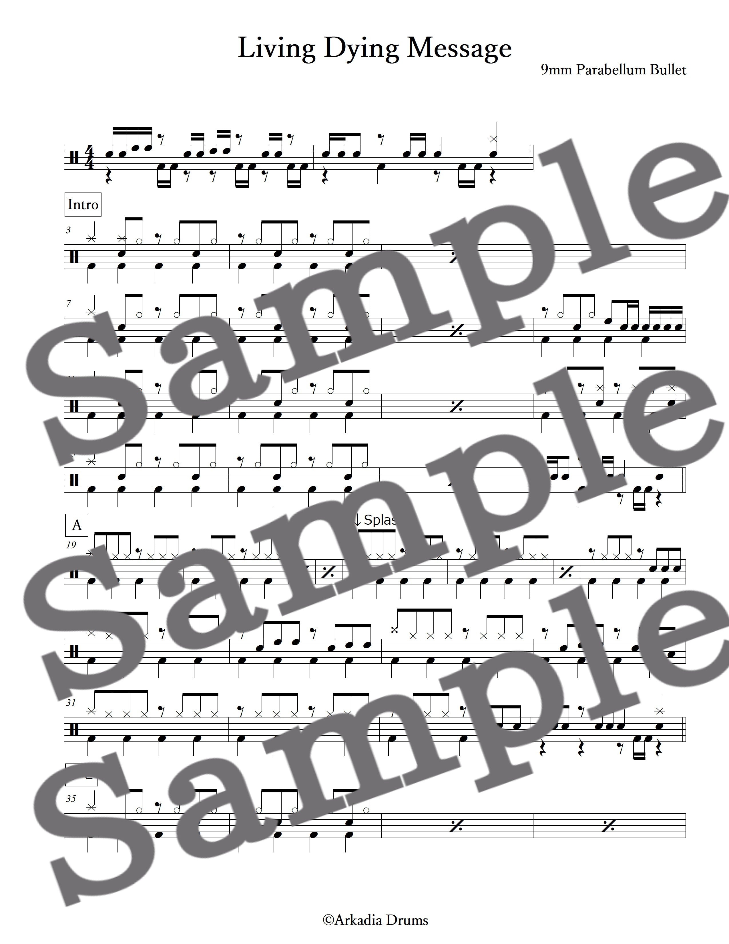 Living Dying Message(9mm Parabellum Bullet)のドラム楽譜です。