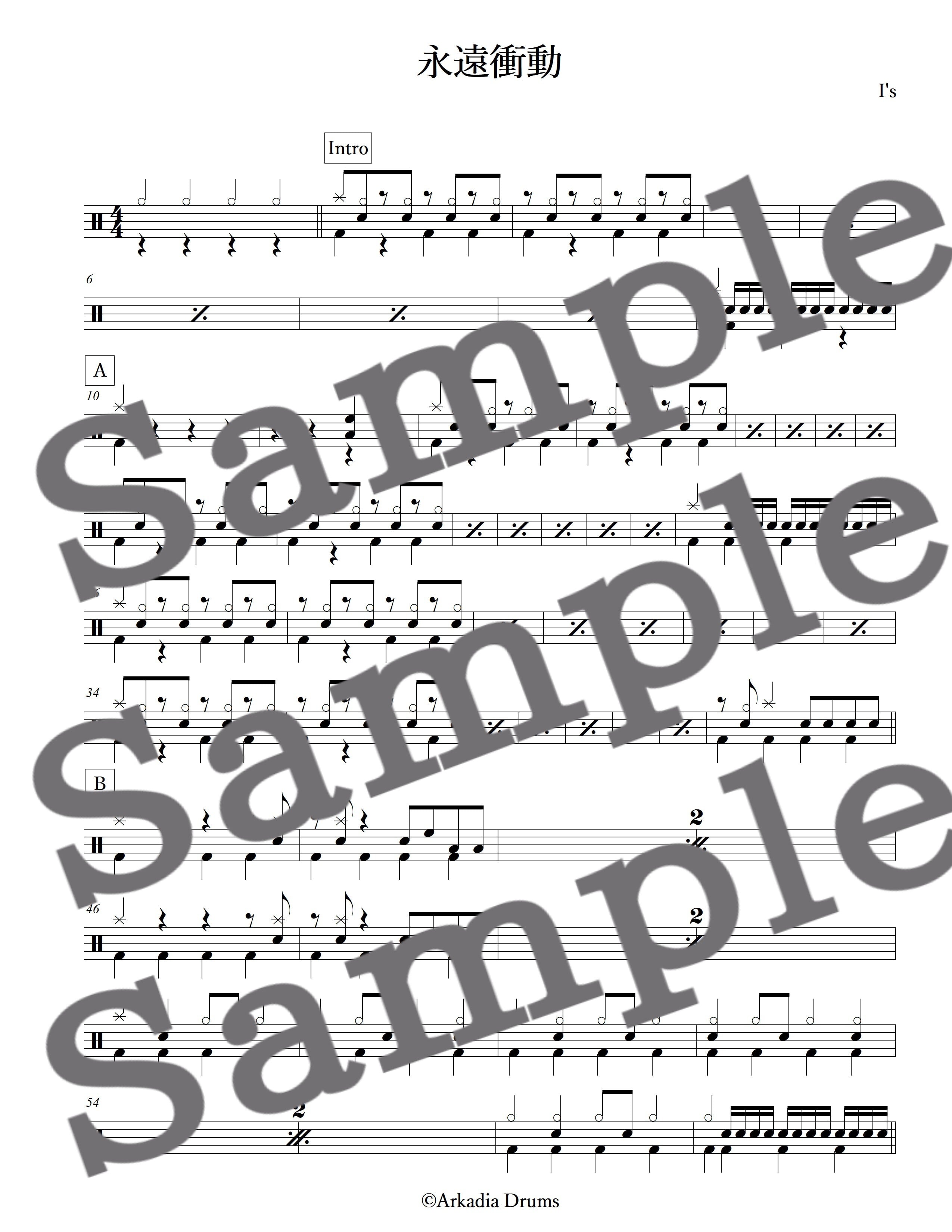 永遠衝動(I's)簡単アレンジバージョンのドラム楽譜です。