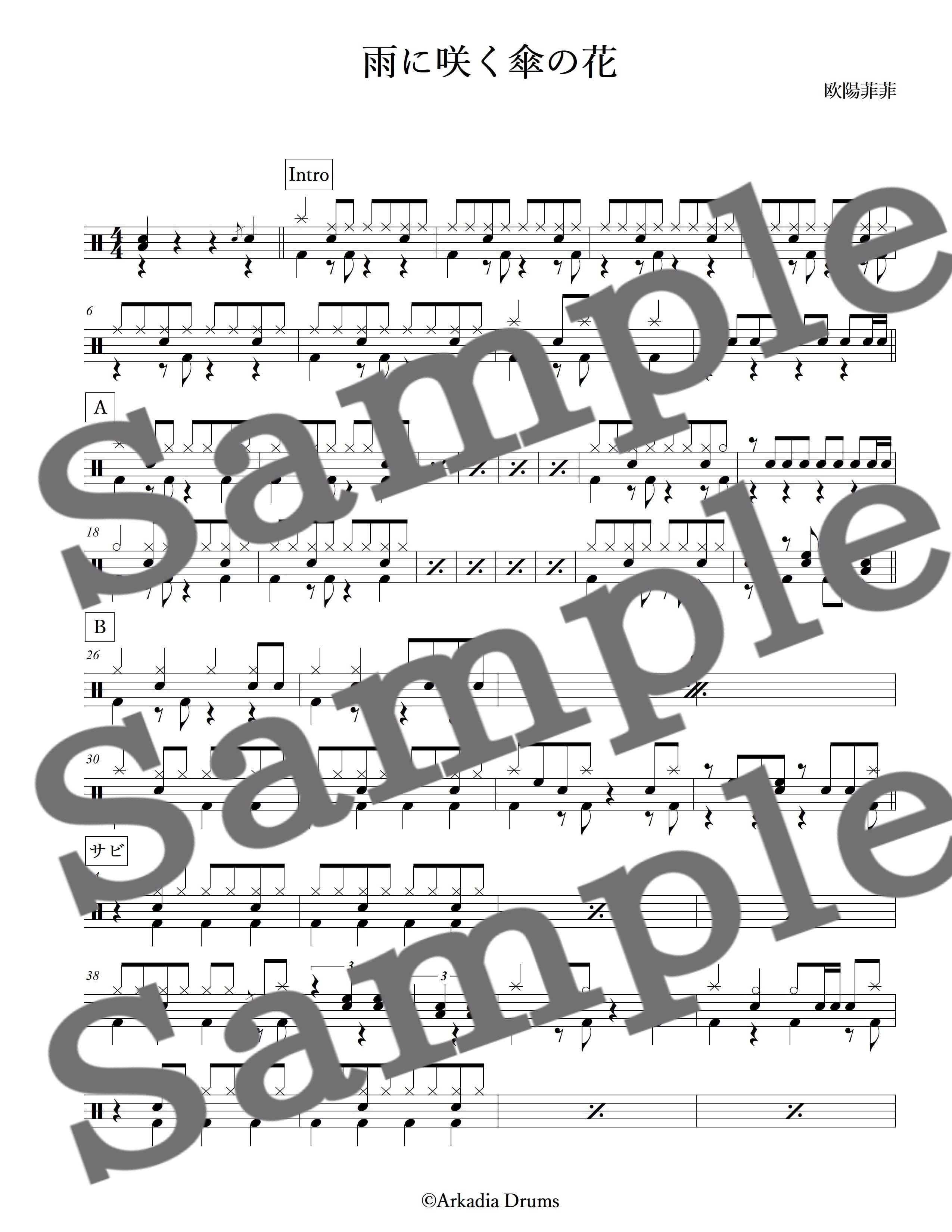 雨に咲く傘の花(欧陽菲菲)のドラム楽譜です。