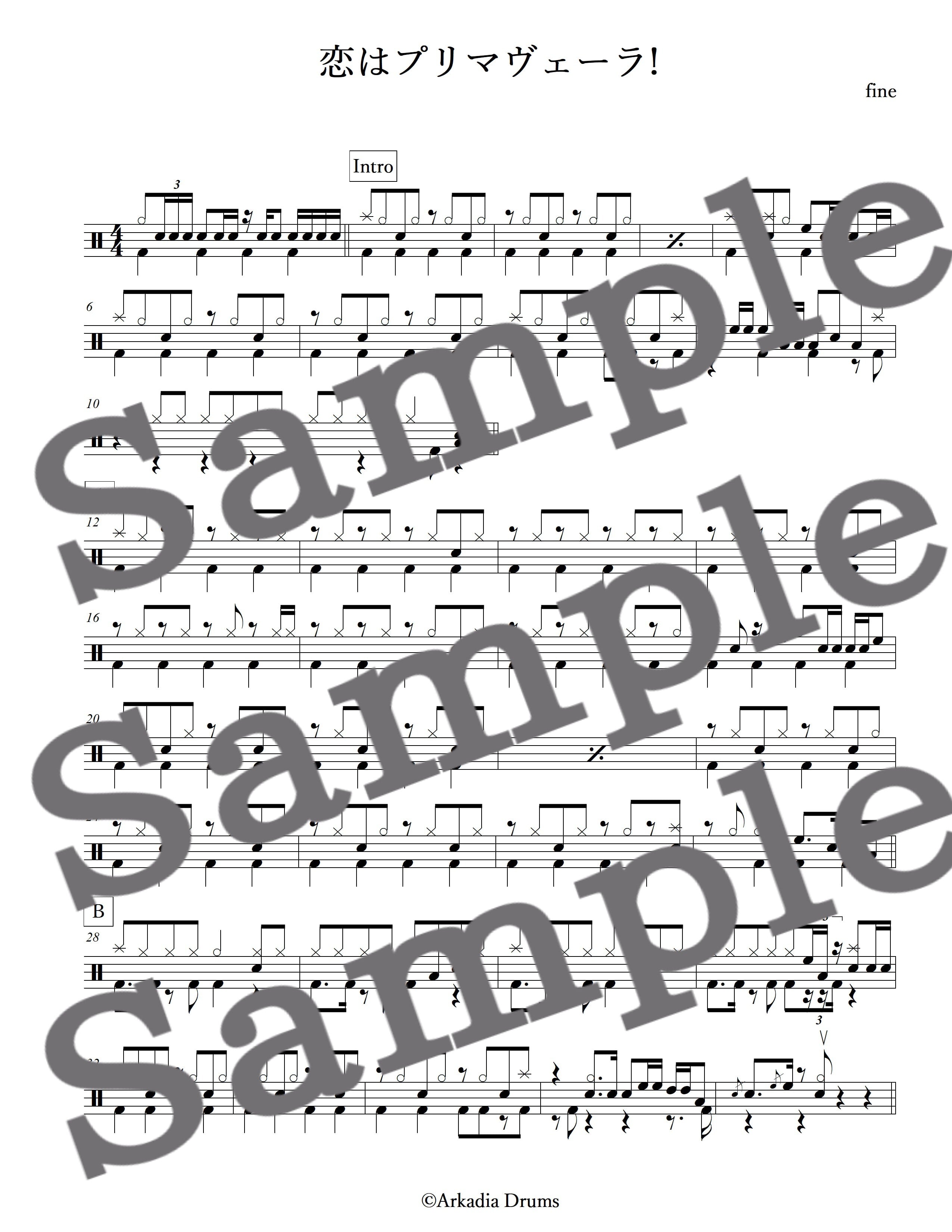 恋はプリマヴェーラ!(fine)のドラム楽譜です。