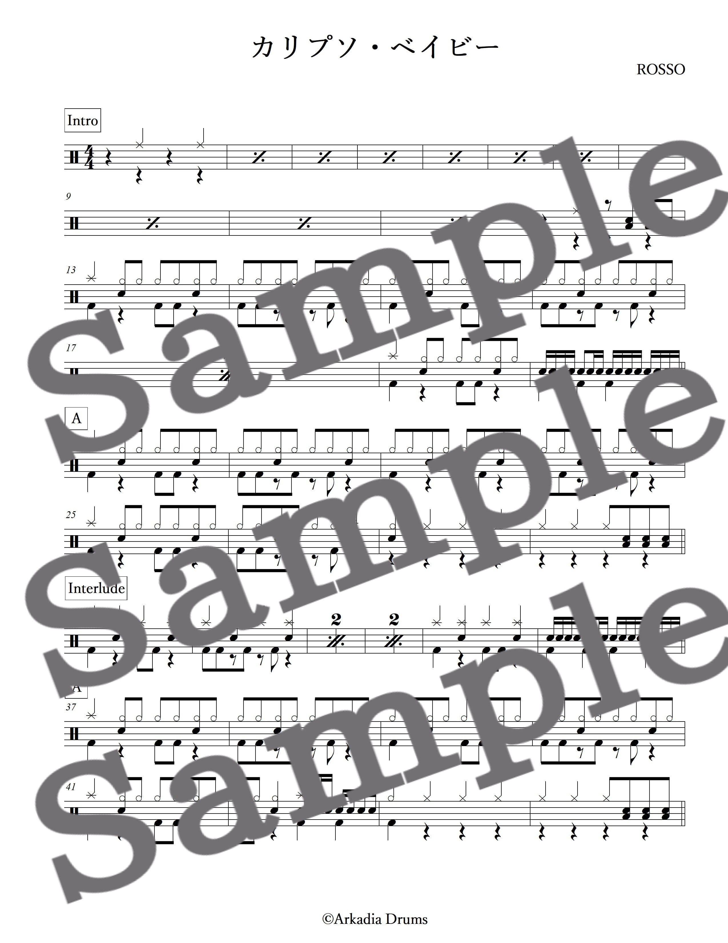カリプソ・ベイビー(ROSSO)のドラム楽譜です。