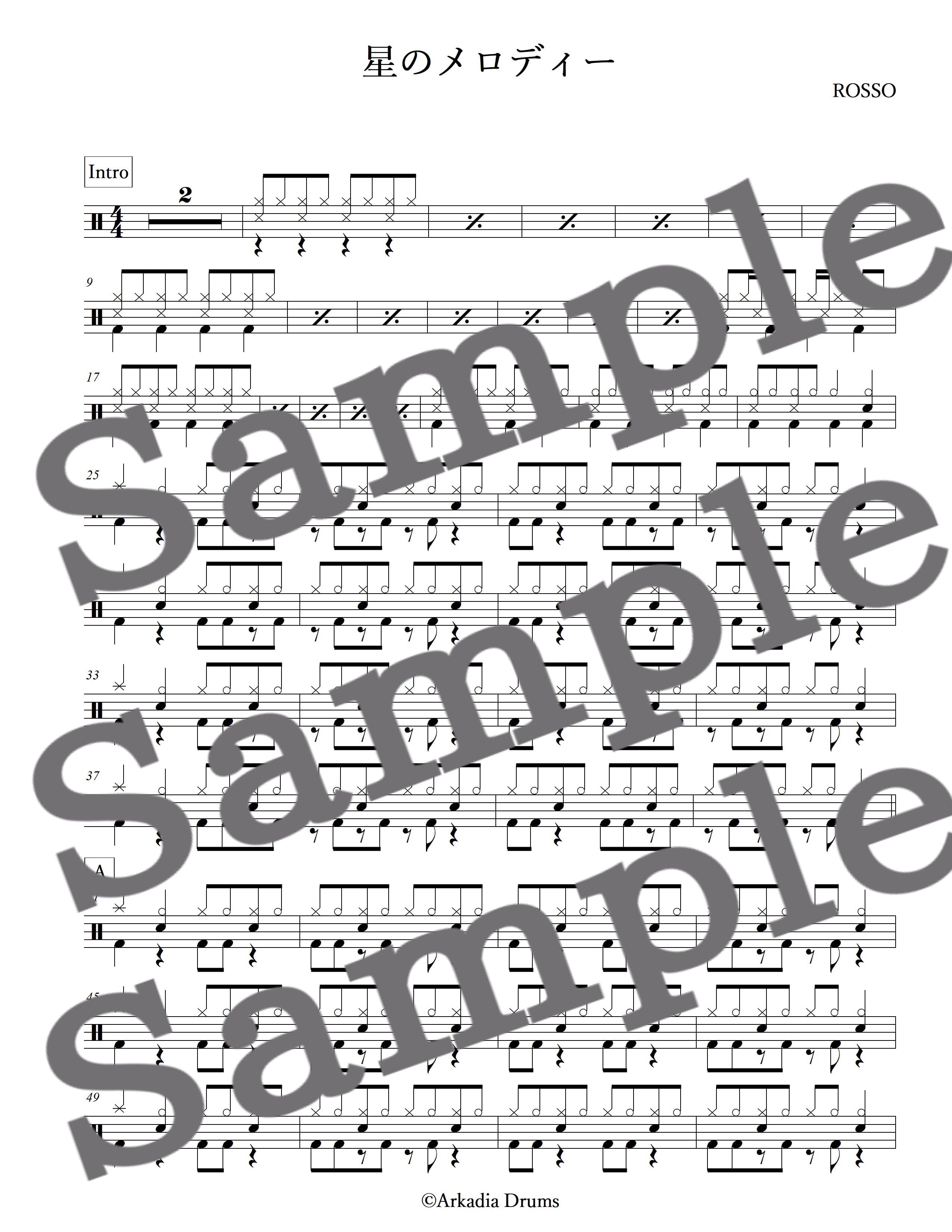ドラムのみの楽譜であること、また大きめのセクションマークを配置しているので、演奏中でも迷いにくいのが特徴です。