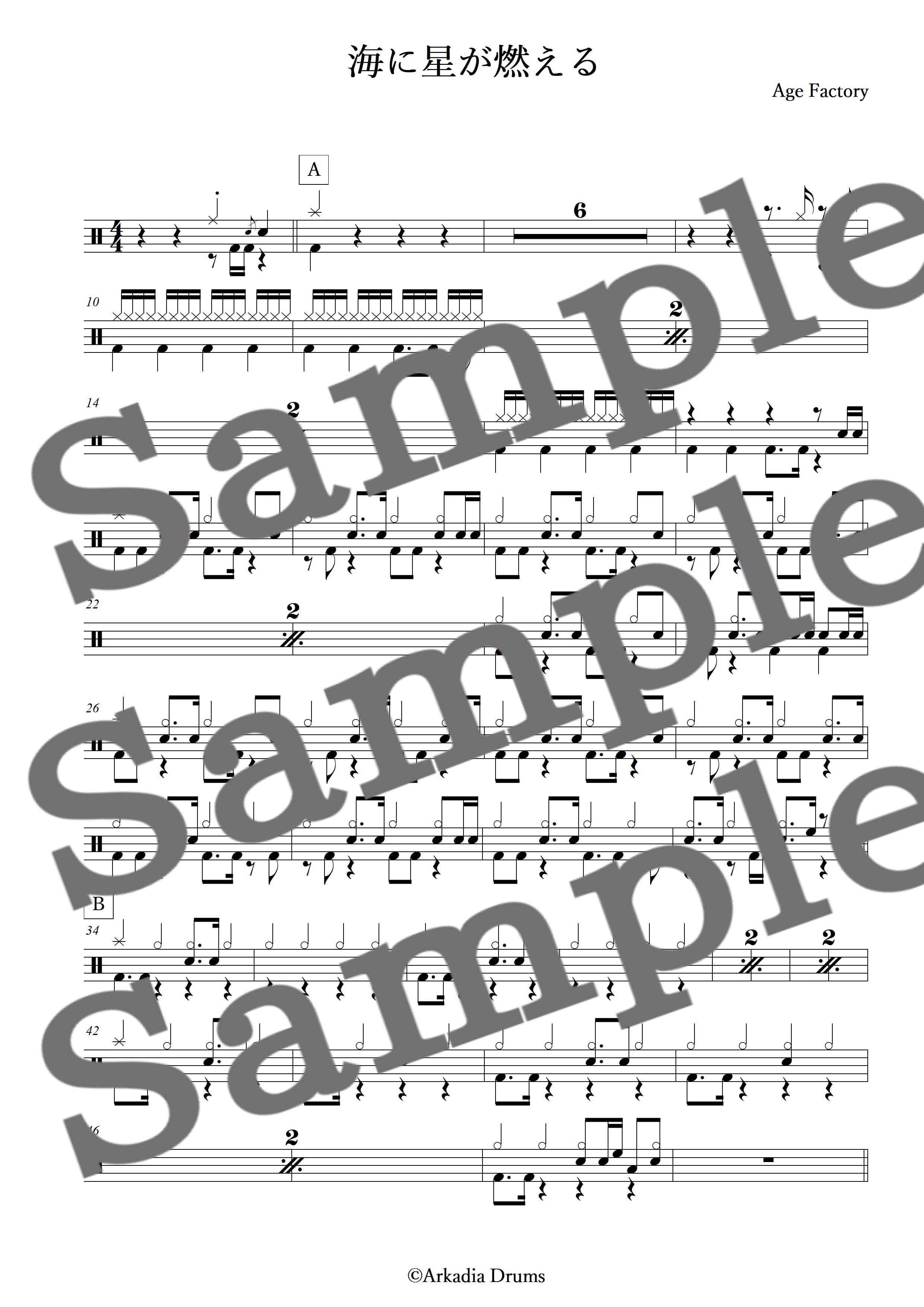 海に星が燃える(Age Factory)のドラム楽譜です。