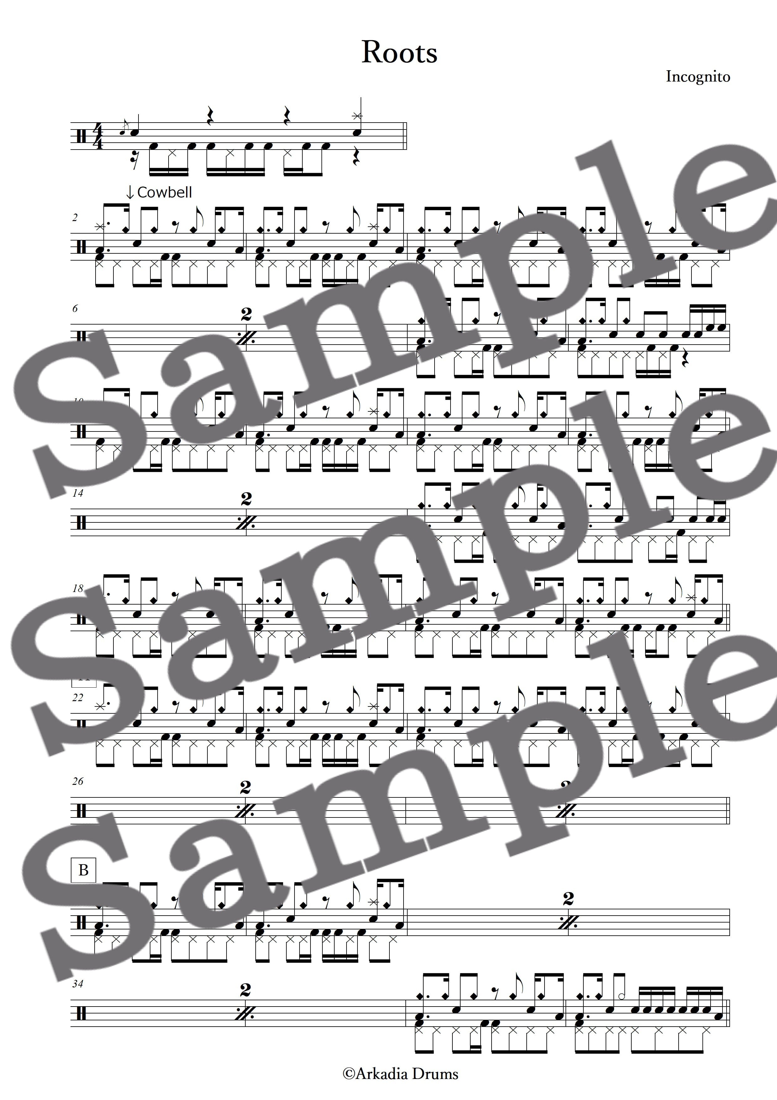 Roots(Incognito)のドラム楽譜です。