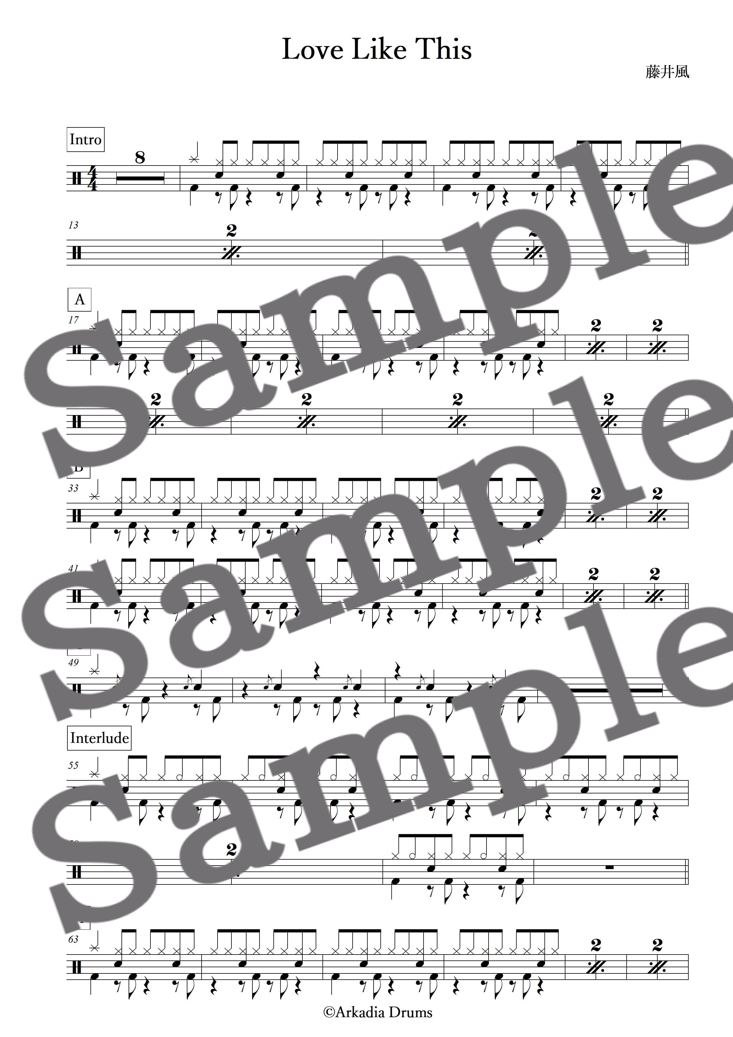 ドラムのみの楽譜であること、また大きめのセクションマークを配置しているので、演奏中でも迷いにくいのが特徴です。