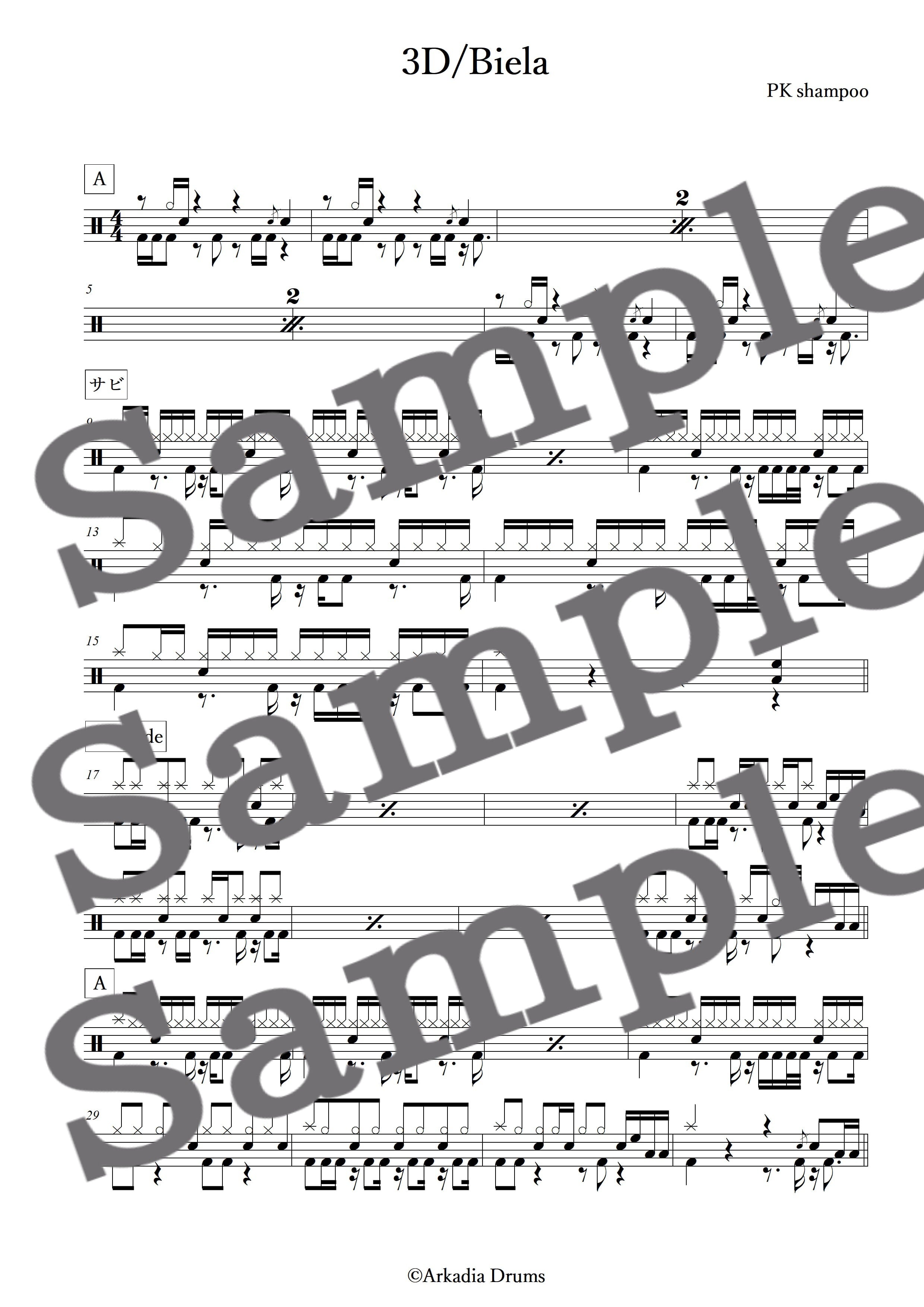 3D Biela(PK shampoo)のドラム楽譜です。