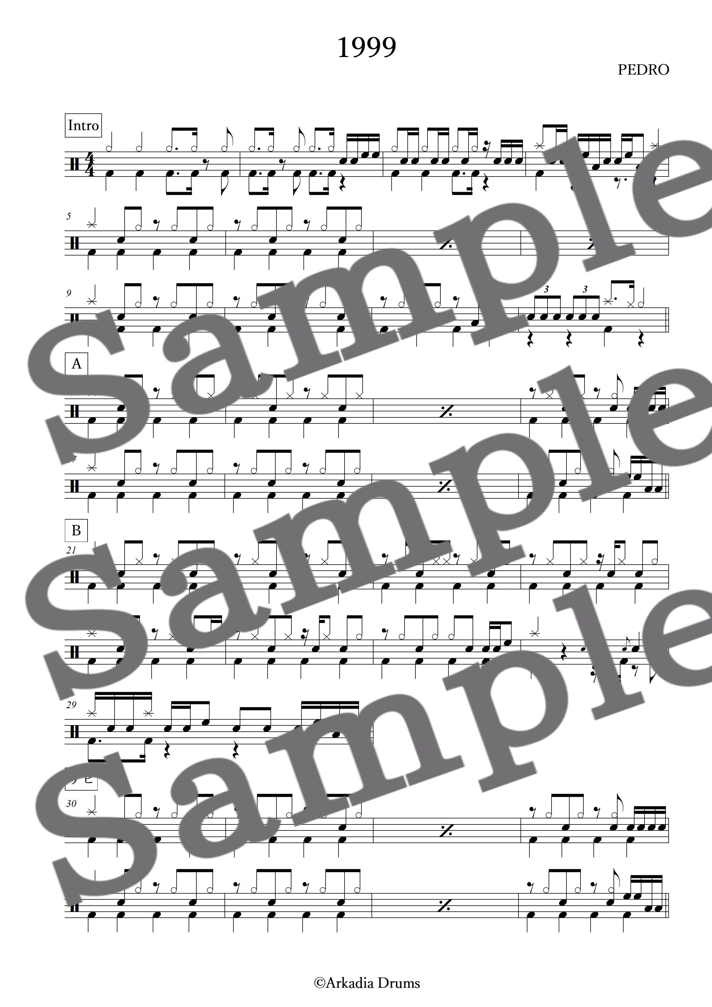 1999(PEDRO)のドラム楽譜です。