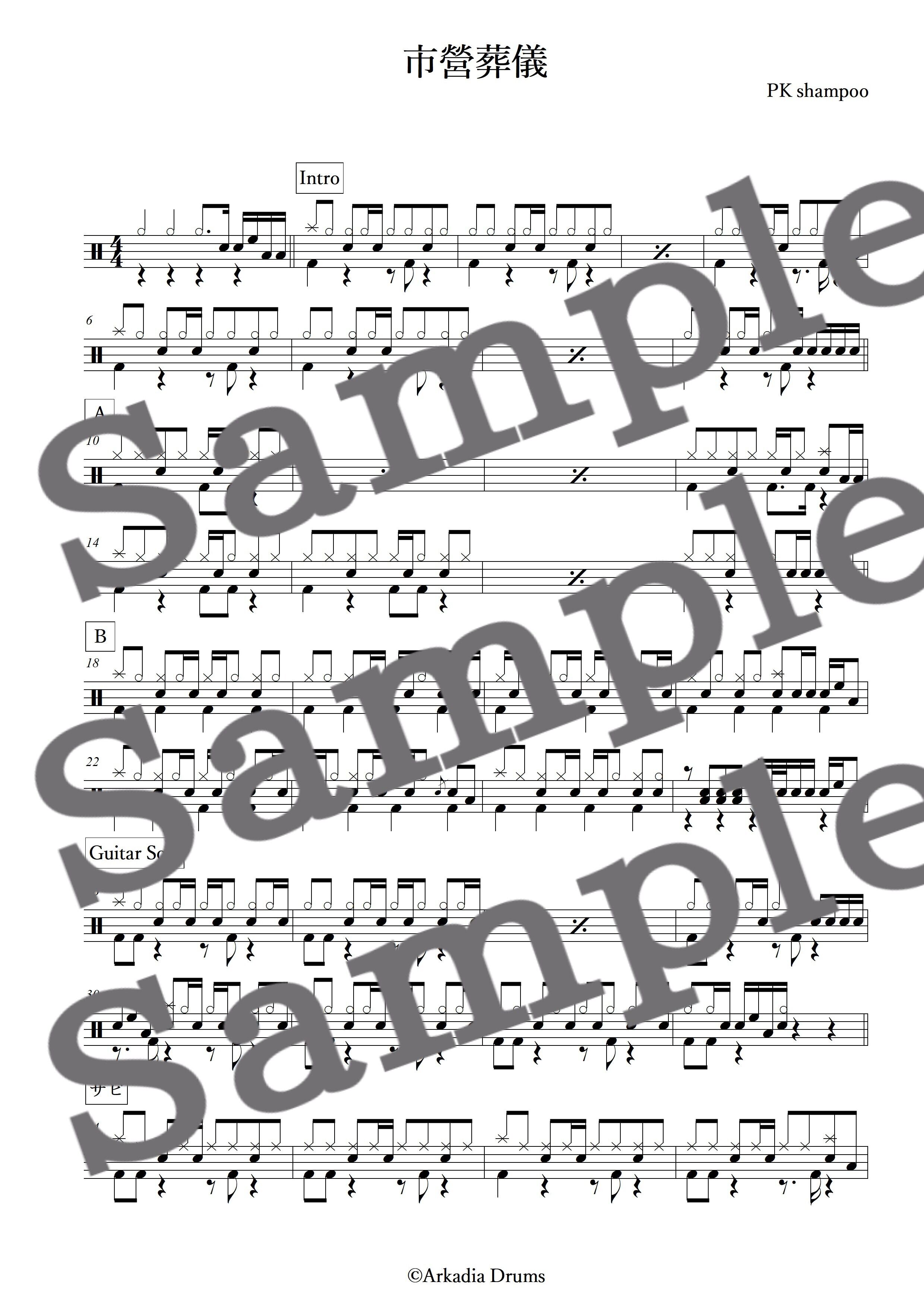 市營葬儀(PK shampoo)のドラム楽譜です。