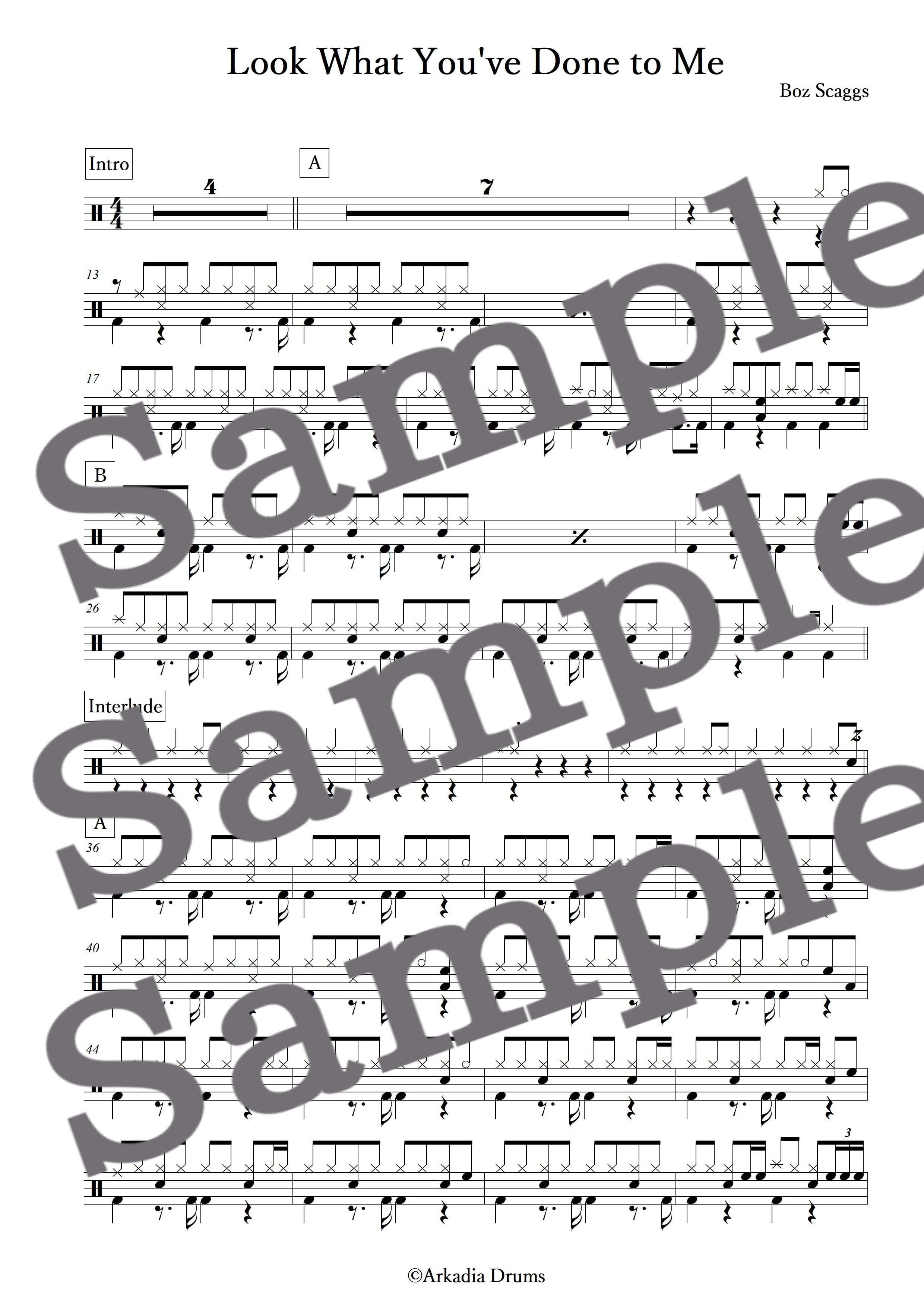Look What You've Done to Me(Boz Scaggs)のドラム楽譜です。