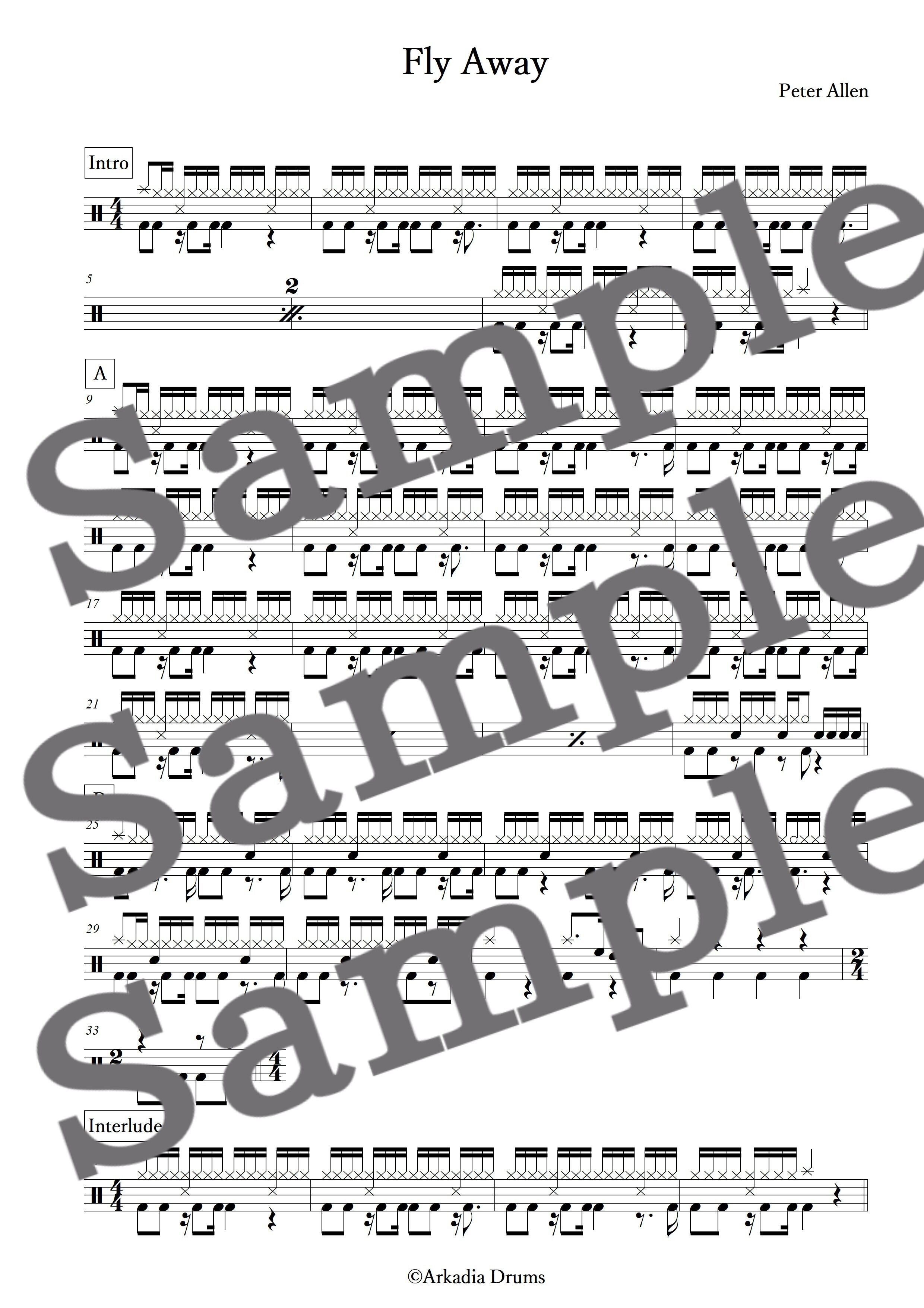 Fly Away(Peter Allen)のドラム楽譜です。