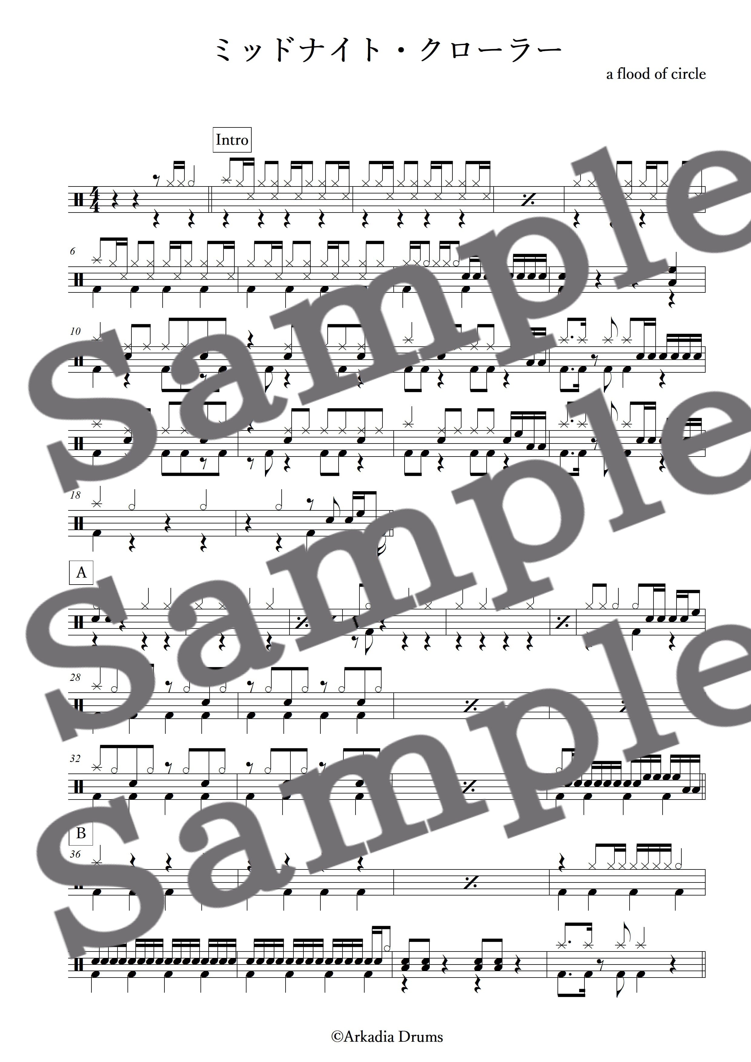 ミッドナイト・クローラー(a flood of circle)のドラム楽譜です。