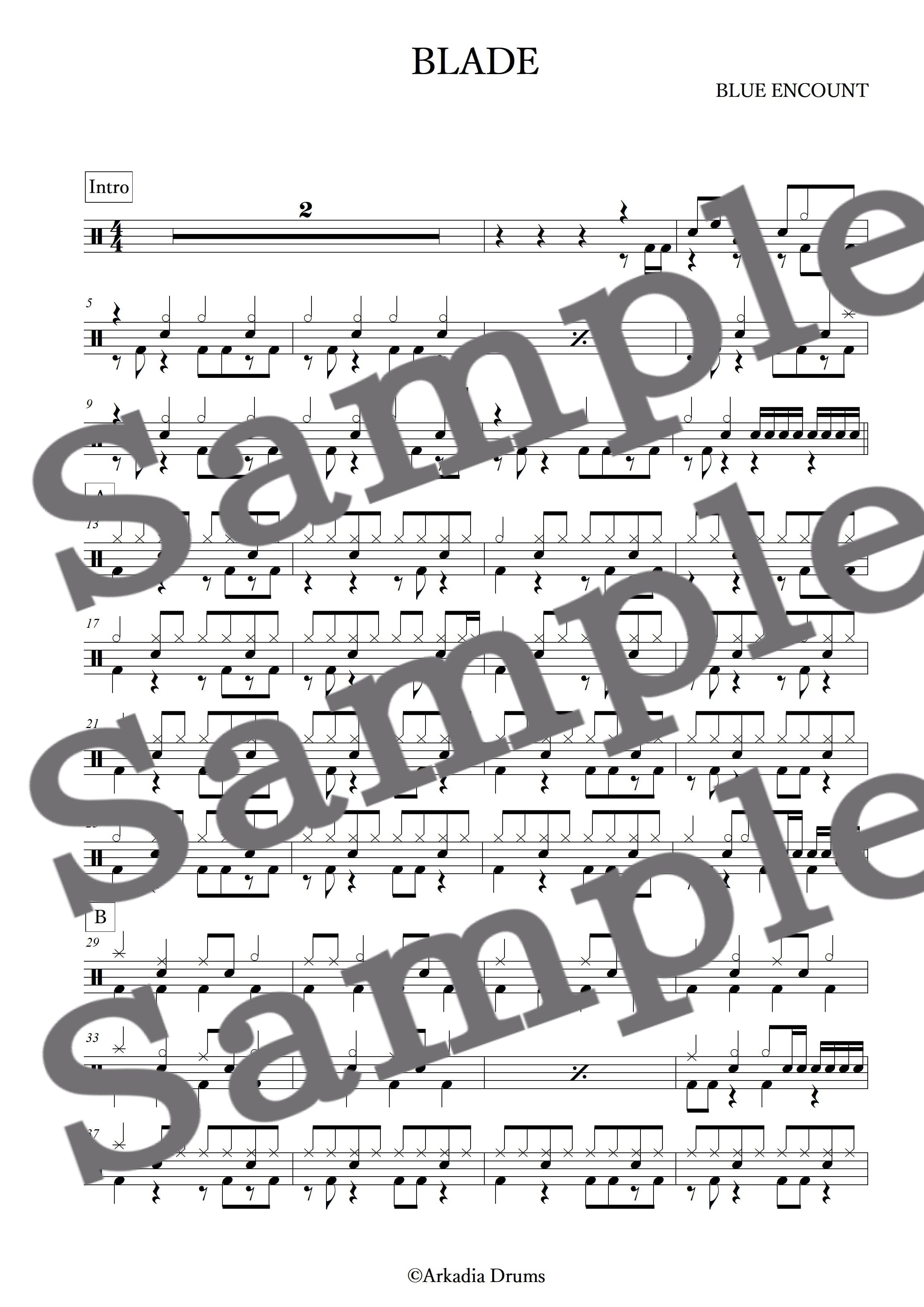 Blade(BLUE ENCOUNT)のドラム楽譜です。