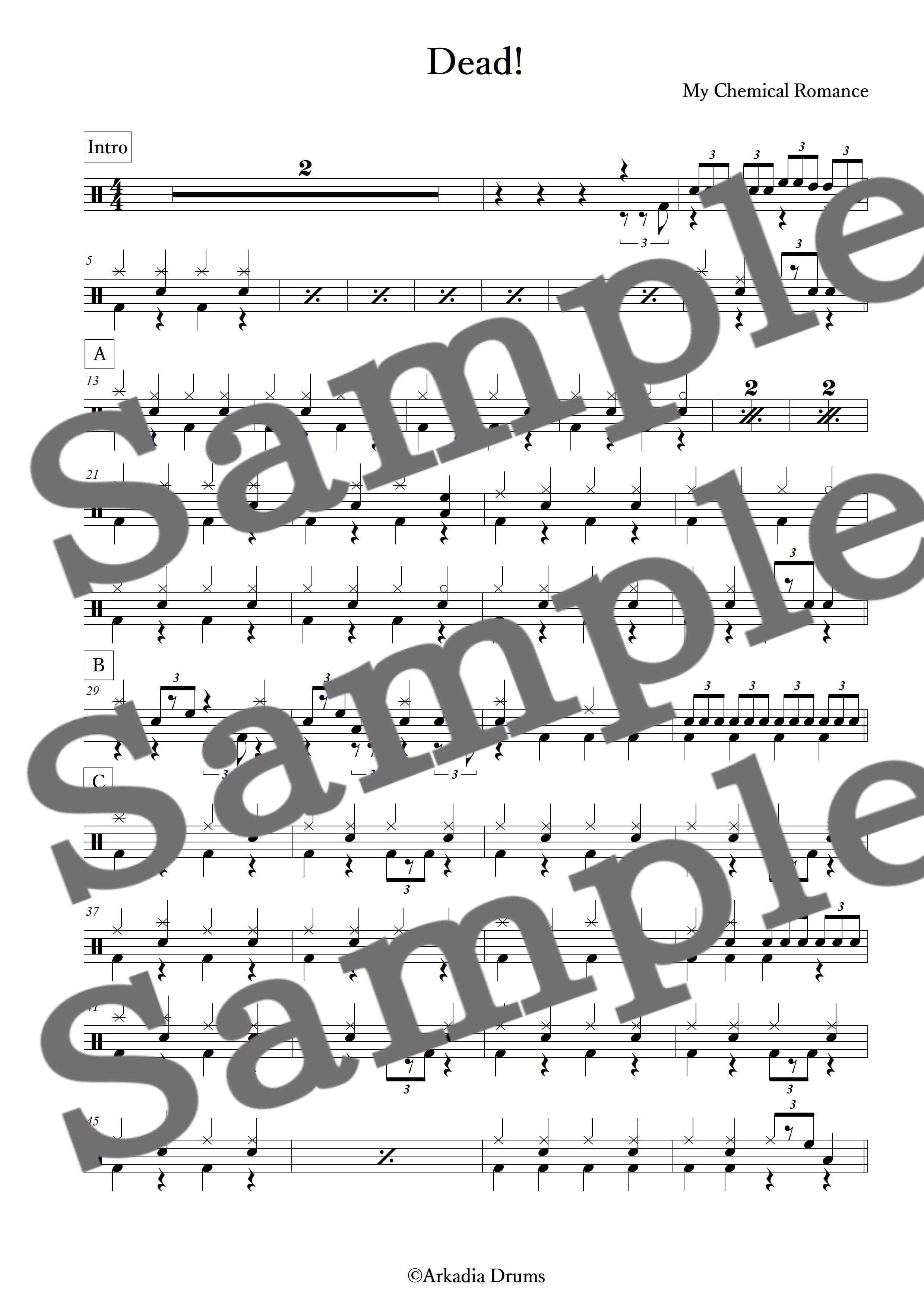 Dead!(My Chemical Romance)のドラム楽譜です。