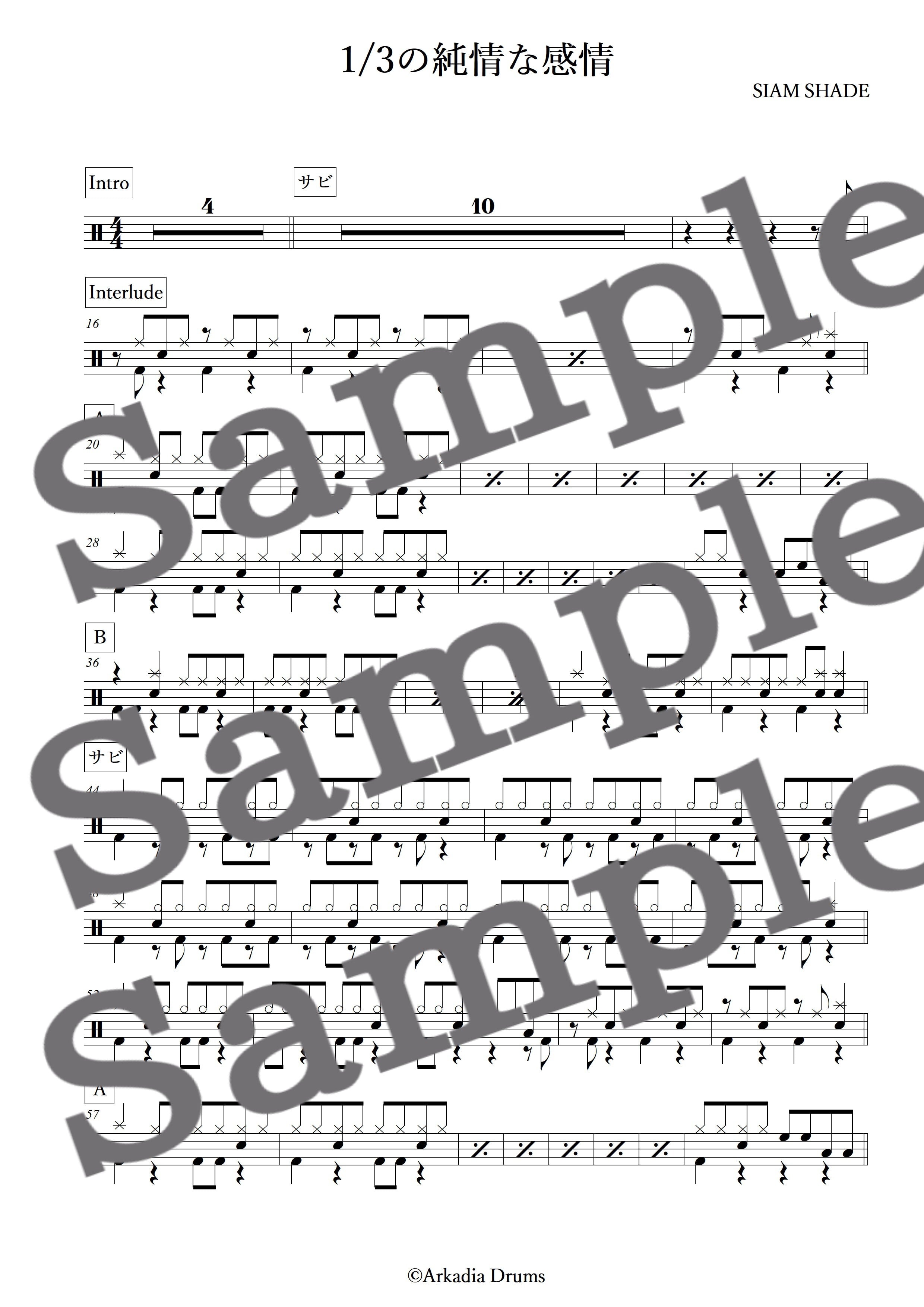 1/3の純情な感情(SIAM SHADE)簡単アレンジバージョンのドラム楽譜です。