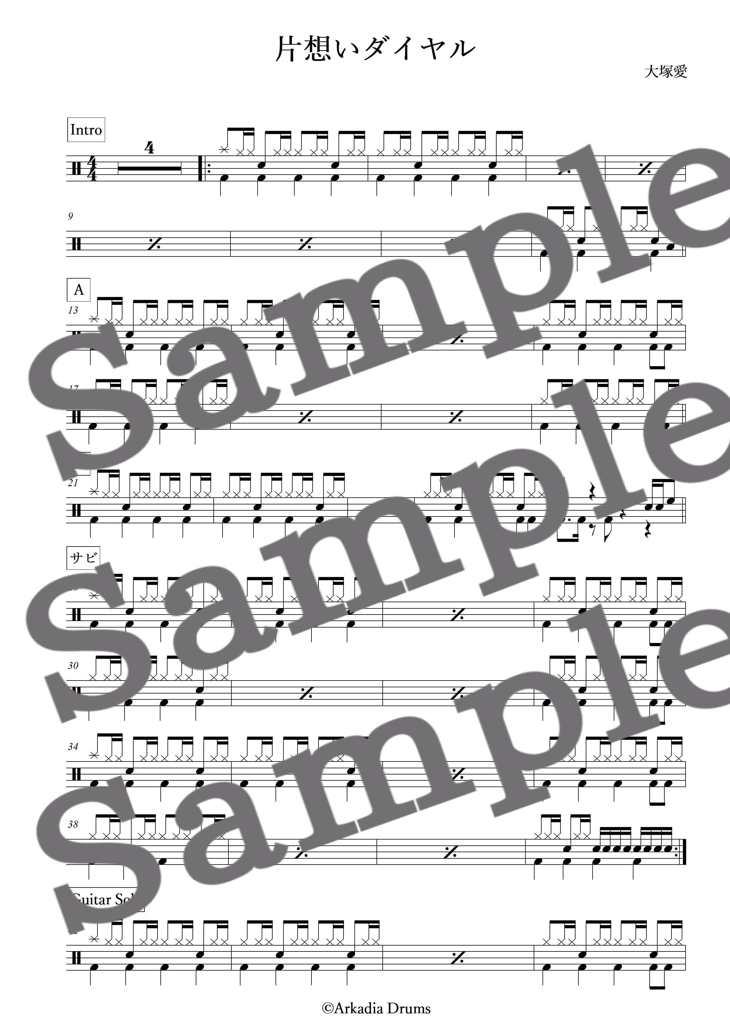 片想いダイヤル(大塚愛)のドラム楽譜です。