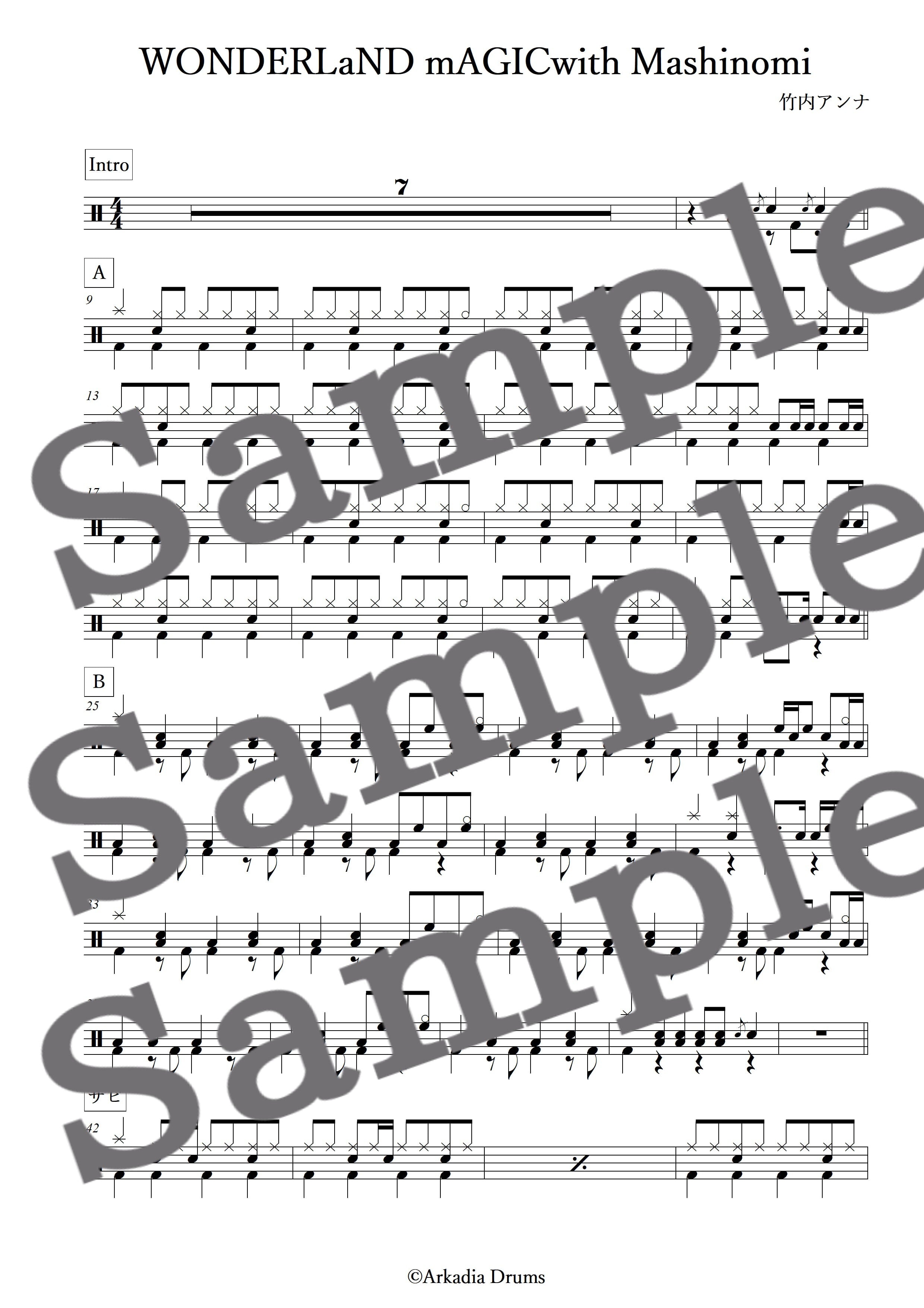 WONDERLaND mAGIC with Mashinomi(竹内アンナ)のドラム楽譜です。