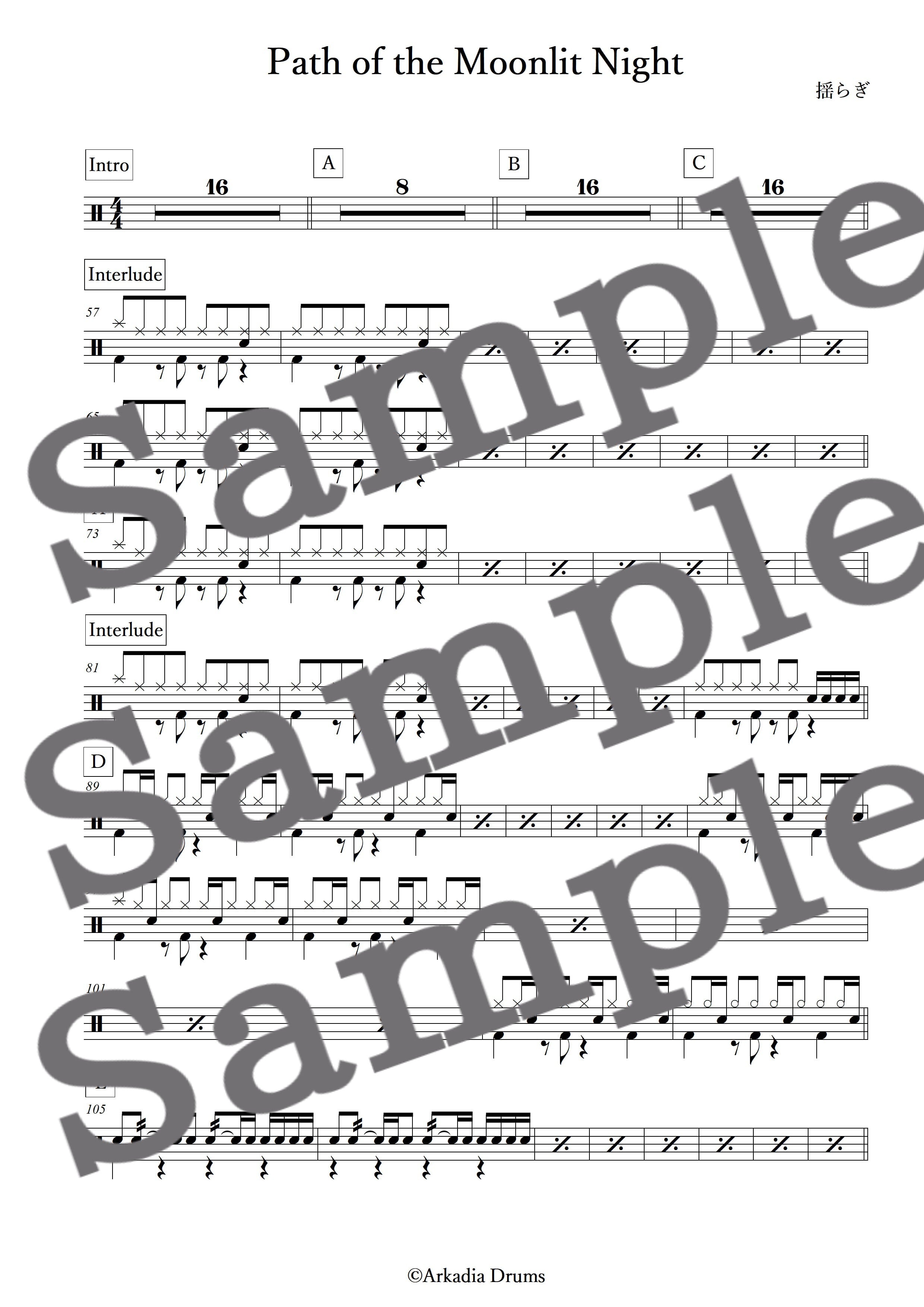 Path of the Moonlit Night(揺らぎ)のドラム楽譜です。