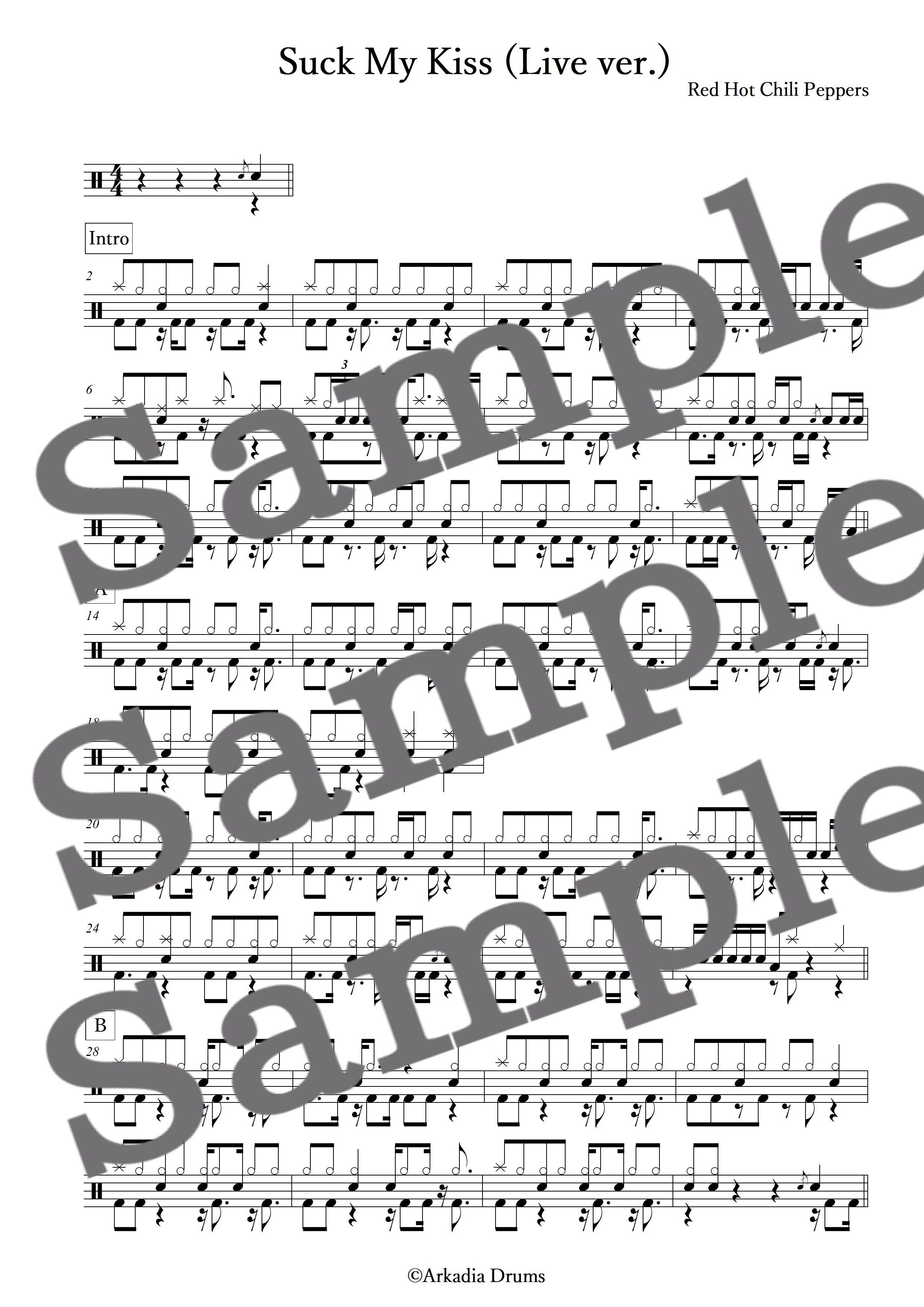 Suck My Kiss (Live ver.)(Red Hot Chili Peppers)のドラム楽譜です。