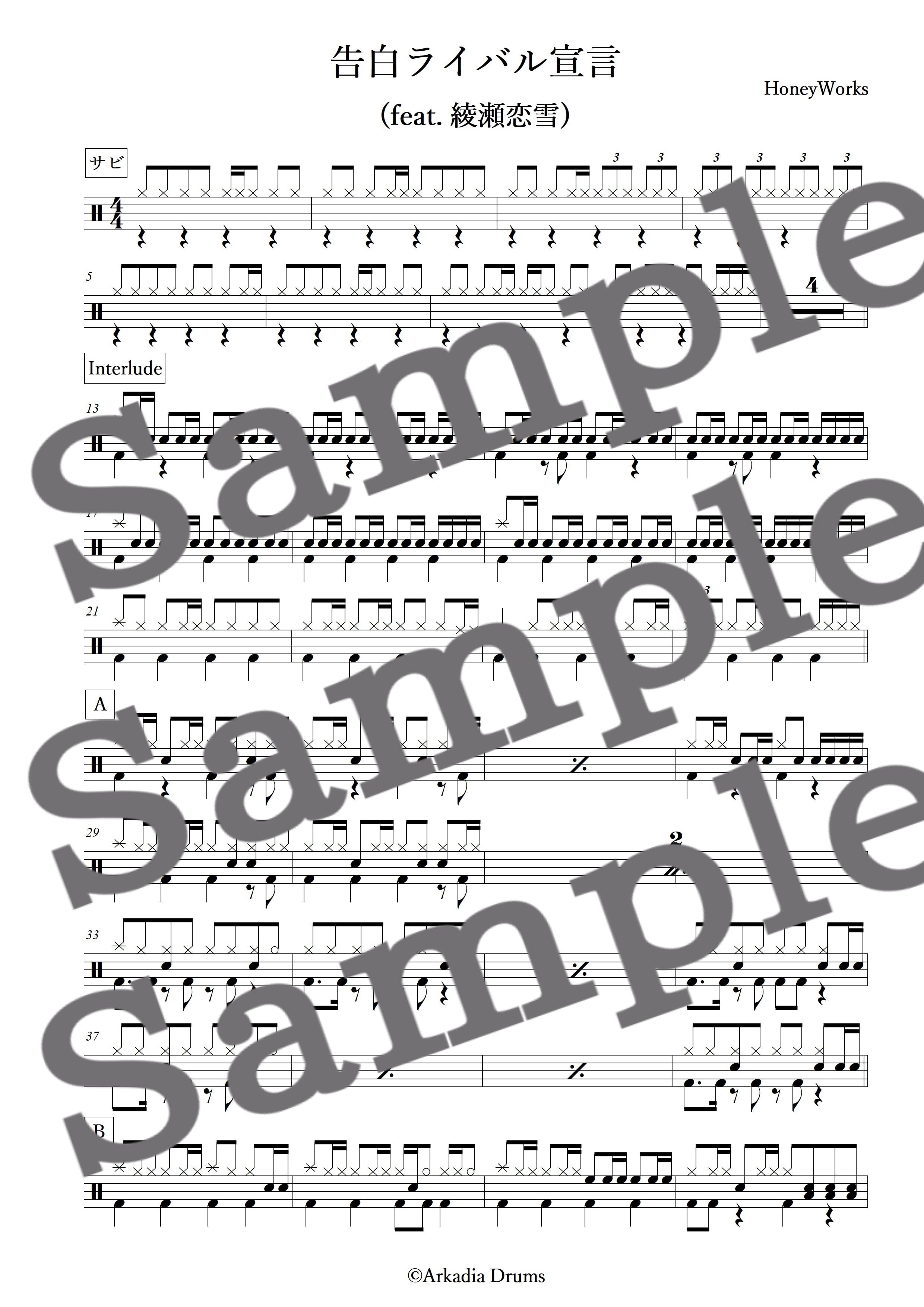 告白ライバル宣言 (feat. 綾瀬恋雪)(HoneyWorks)のドラム楽譜です。