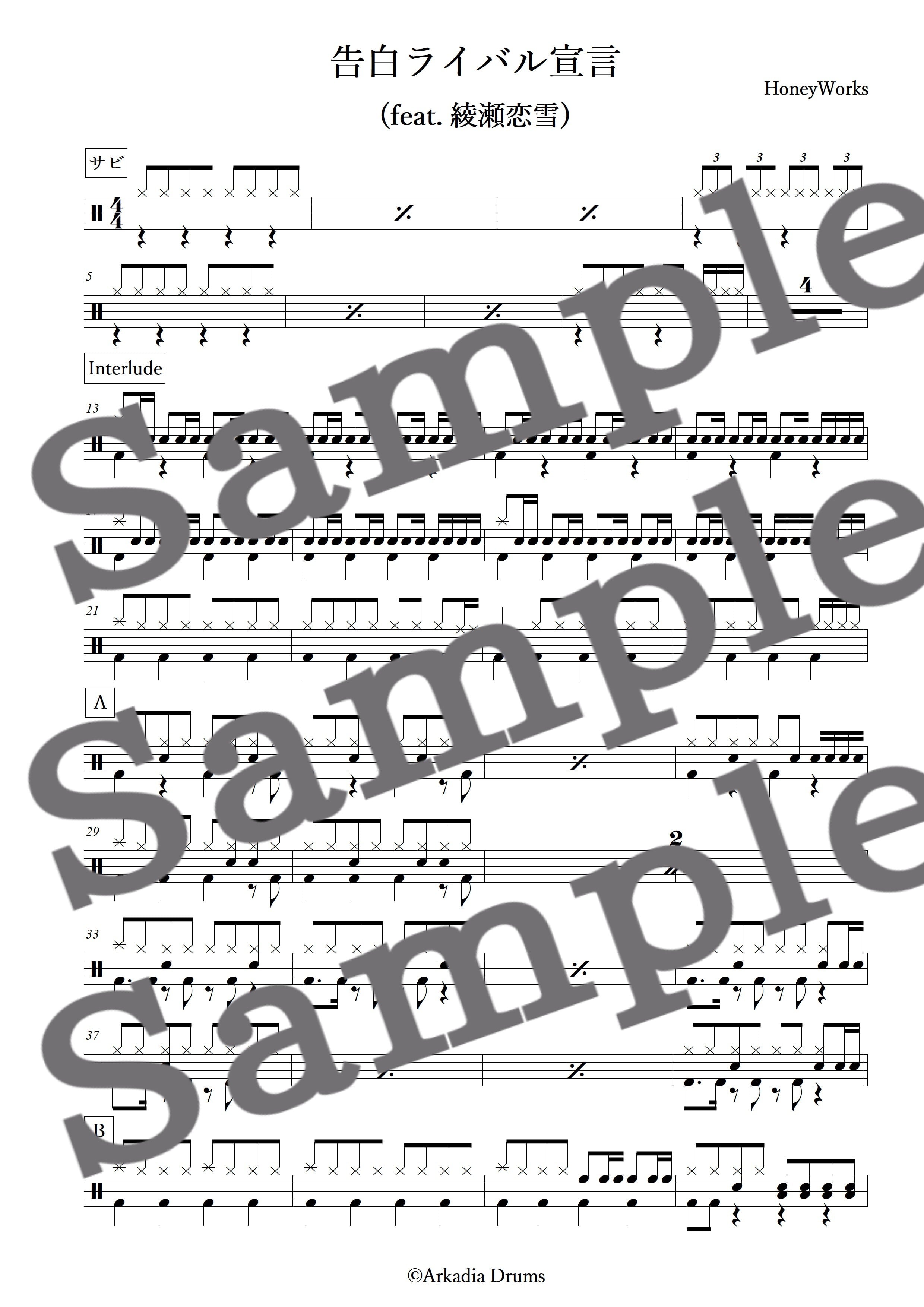 告白ライバル宣言 (feat. 綾瀬恋雪)(HoneyWorks)簡単アレンジバージョンのドラム楽譜です。