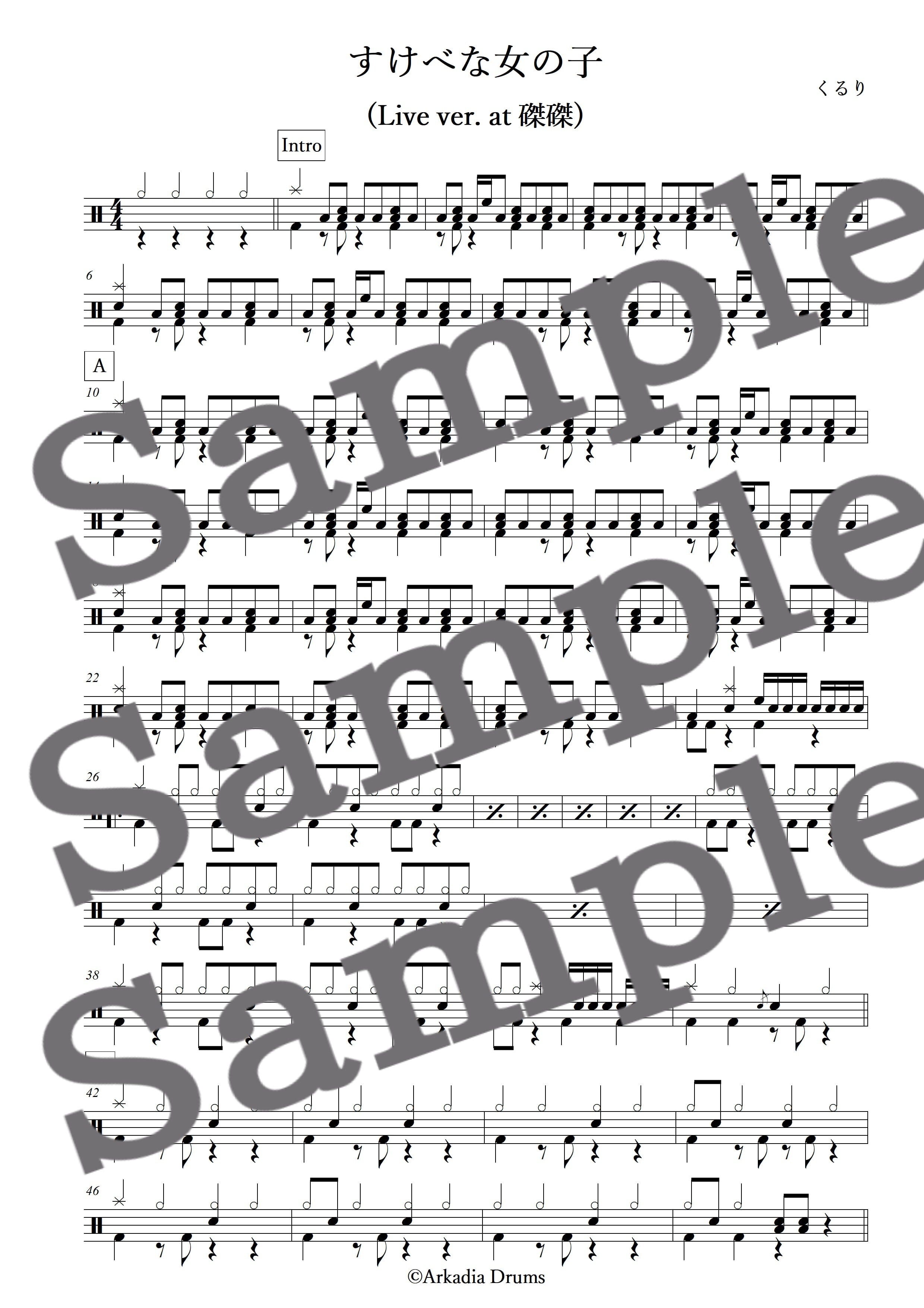 すけべな女の子 (Live ver. at 磔磔)(くるり)のドラム楽譜です。