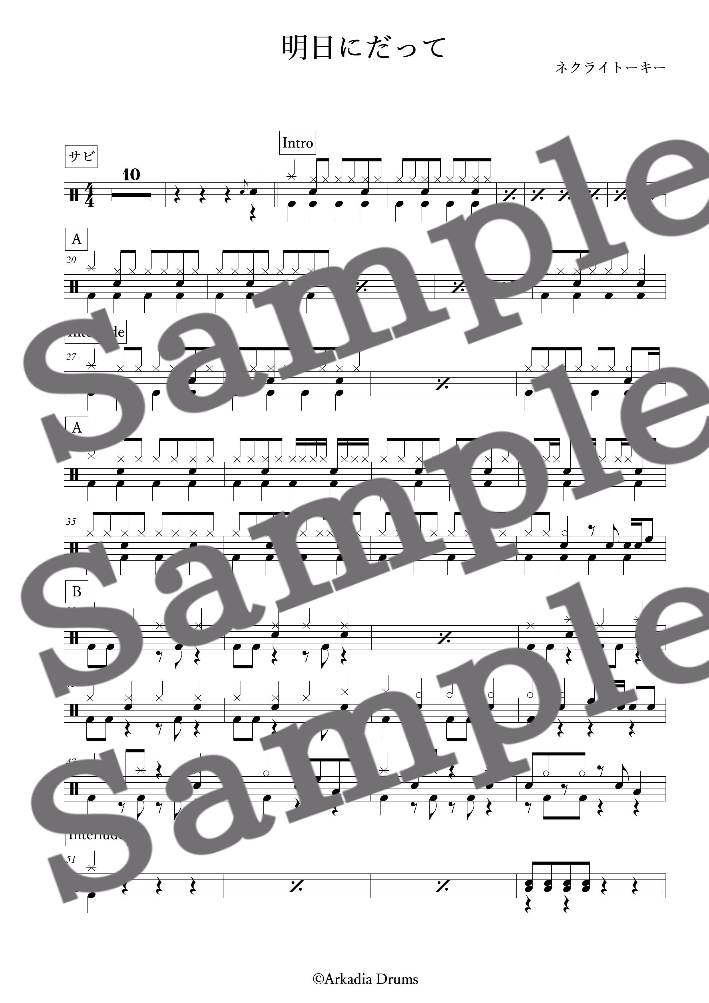 明日にだって(ネクライトーキー)のドラム楽譜です。