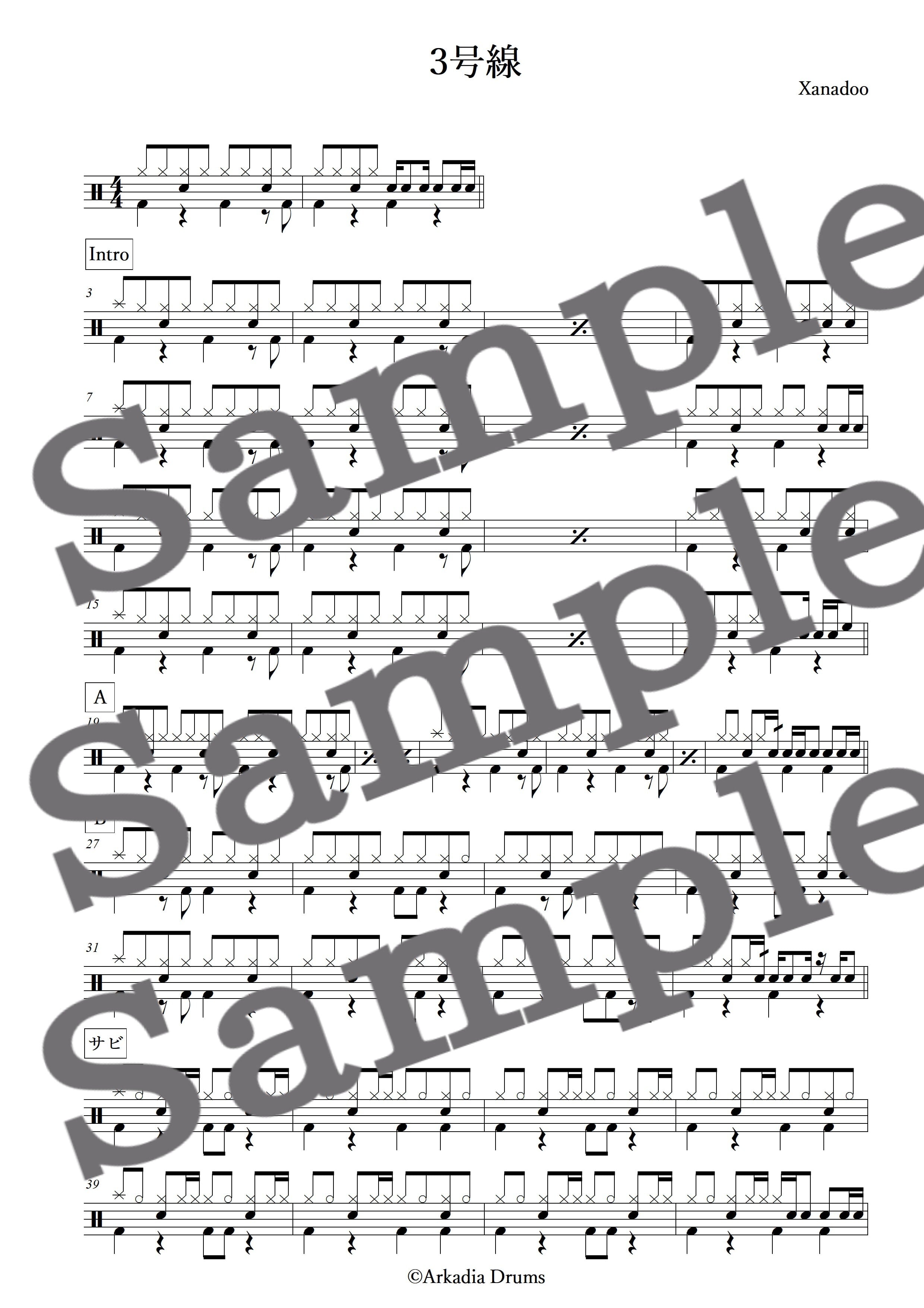 ドラムのみの楽譜であること、また大きめのセクションマークを配置しているので、演奏中でも迷いにくいのが特徴です。