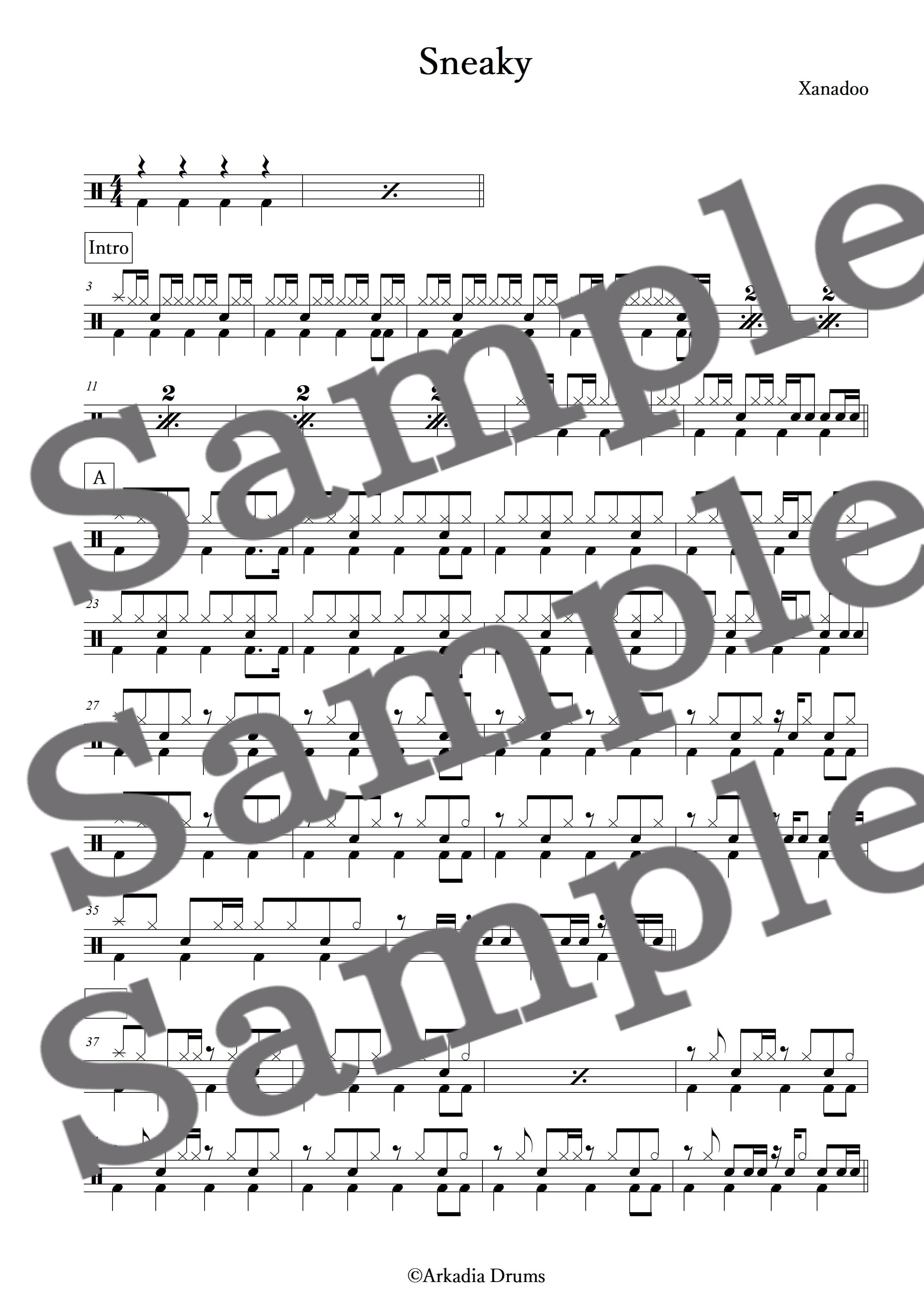 ドラムのみの楽譜であること、また大きめのセクションマークを配置しているので、演奏中でも迷いにくいのが特徴です。