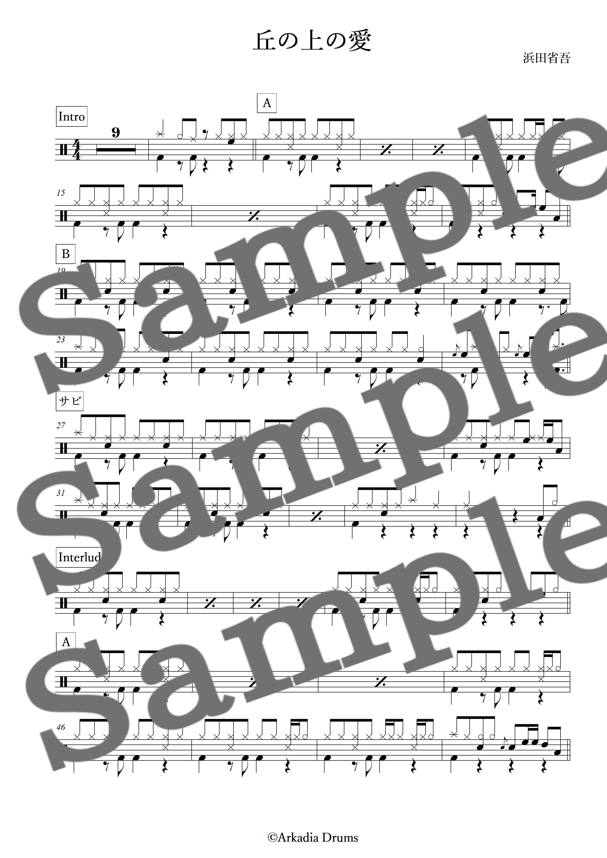 丘の上の愛(浜田省吾)のドラム楽譜です。