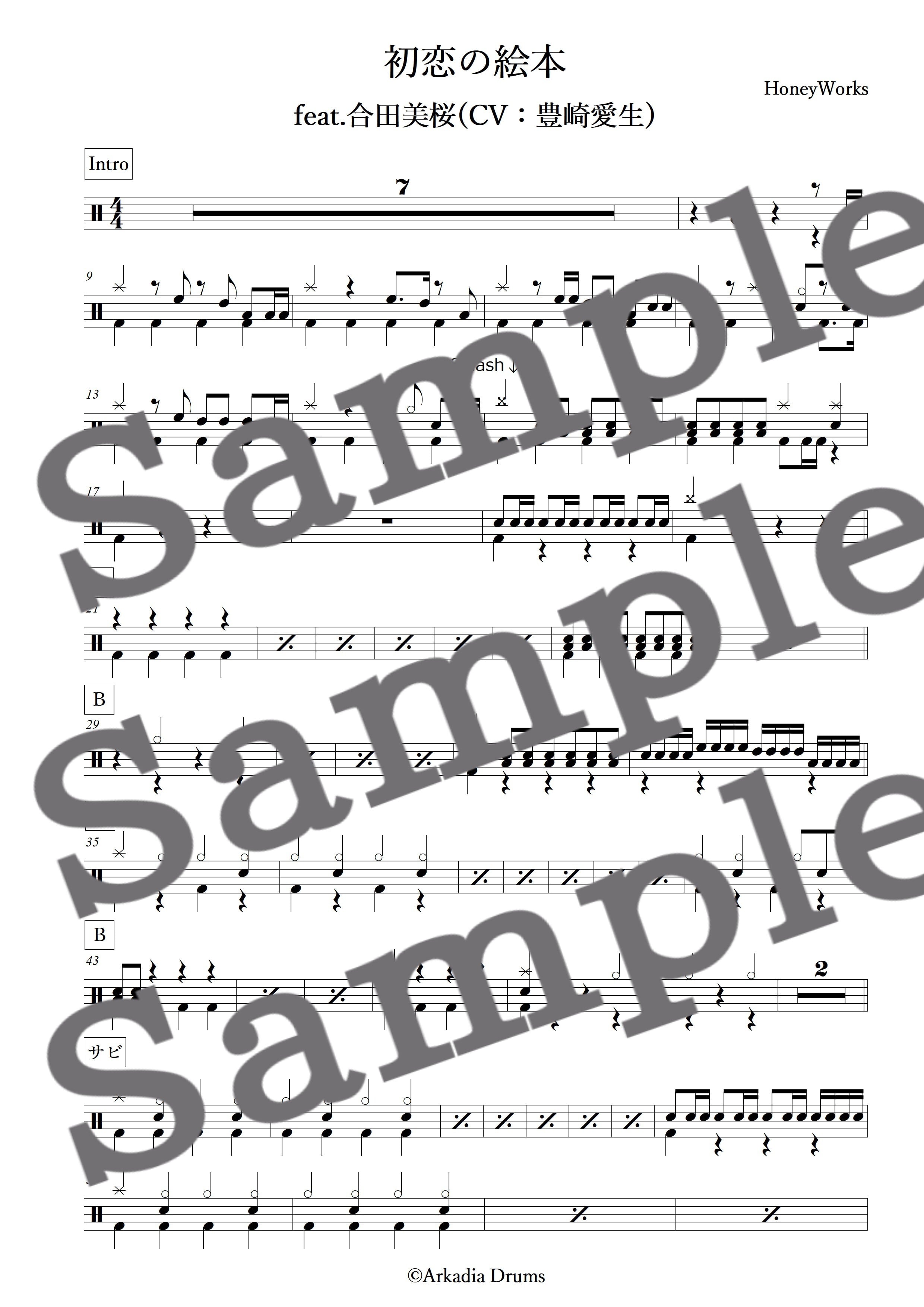 初恋の絵本 feat.合田美桜(CV:豊崎愛生)(HoneyWorks)のドラム楽譜です。