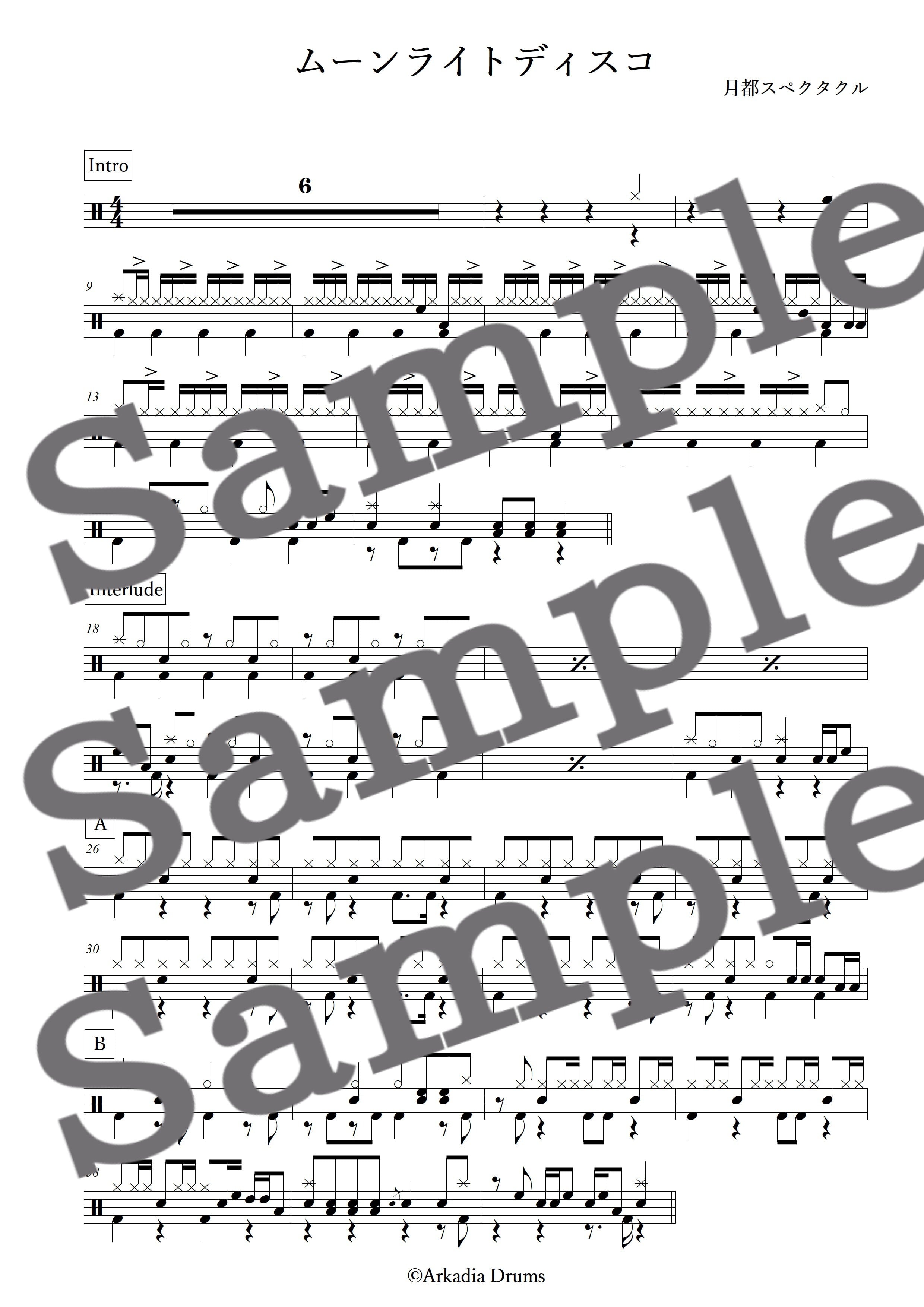 ムーンライトディスコ(月都スペクタクル)のドラム楽譜です。