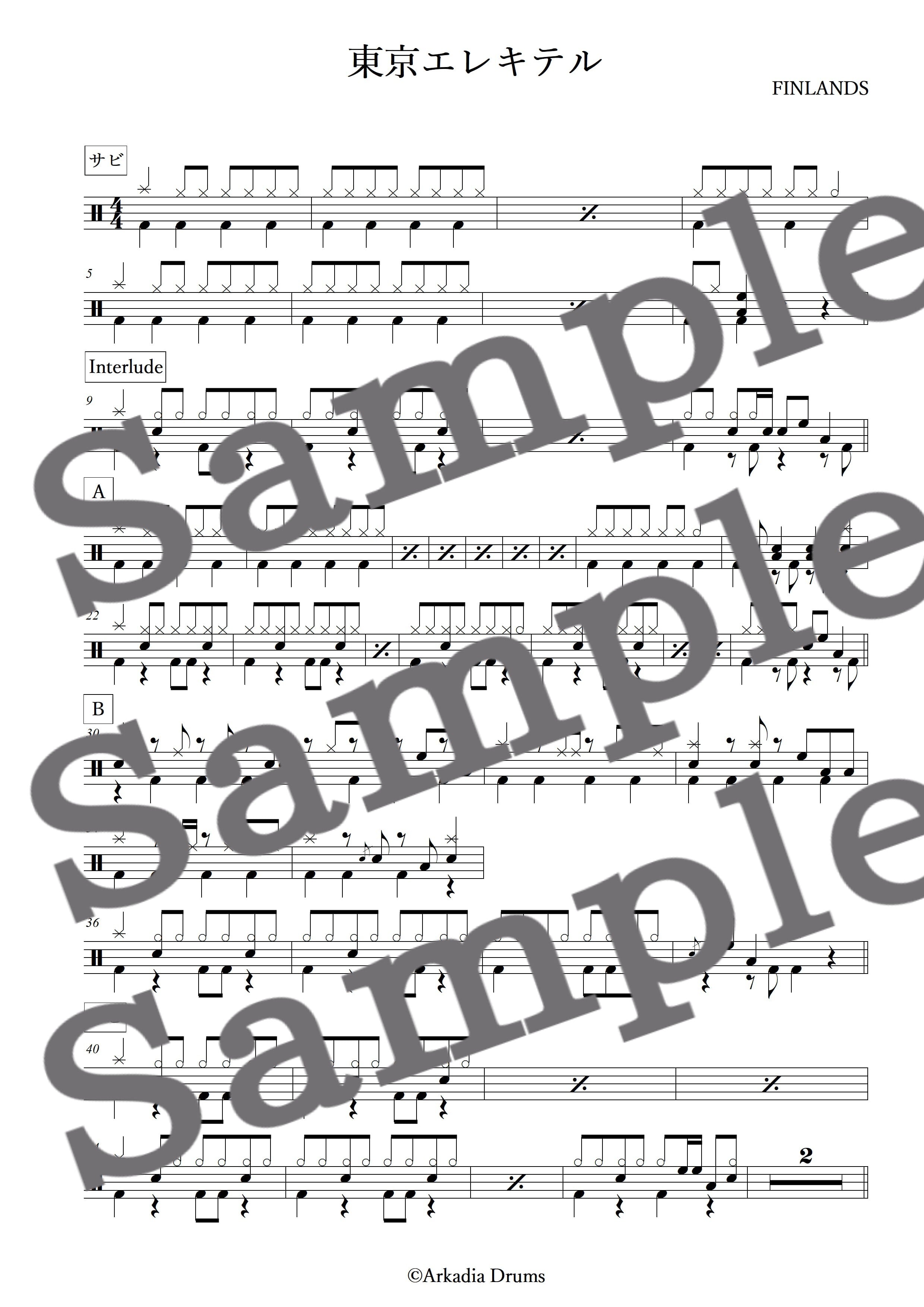 東京エレキテル(FINLANDS)のドラム楽譜です。