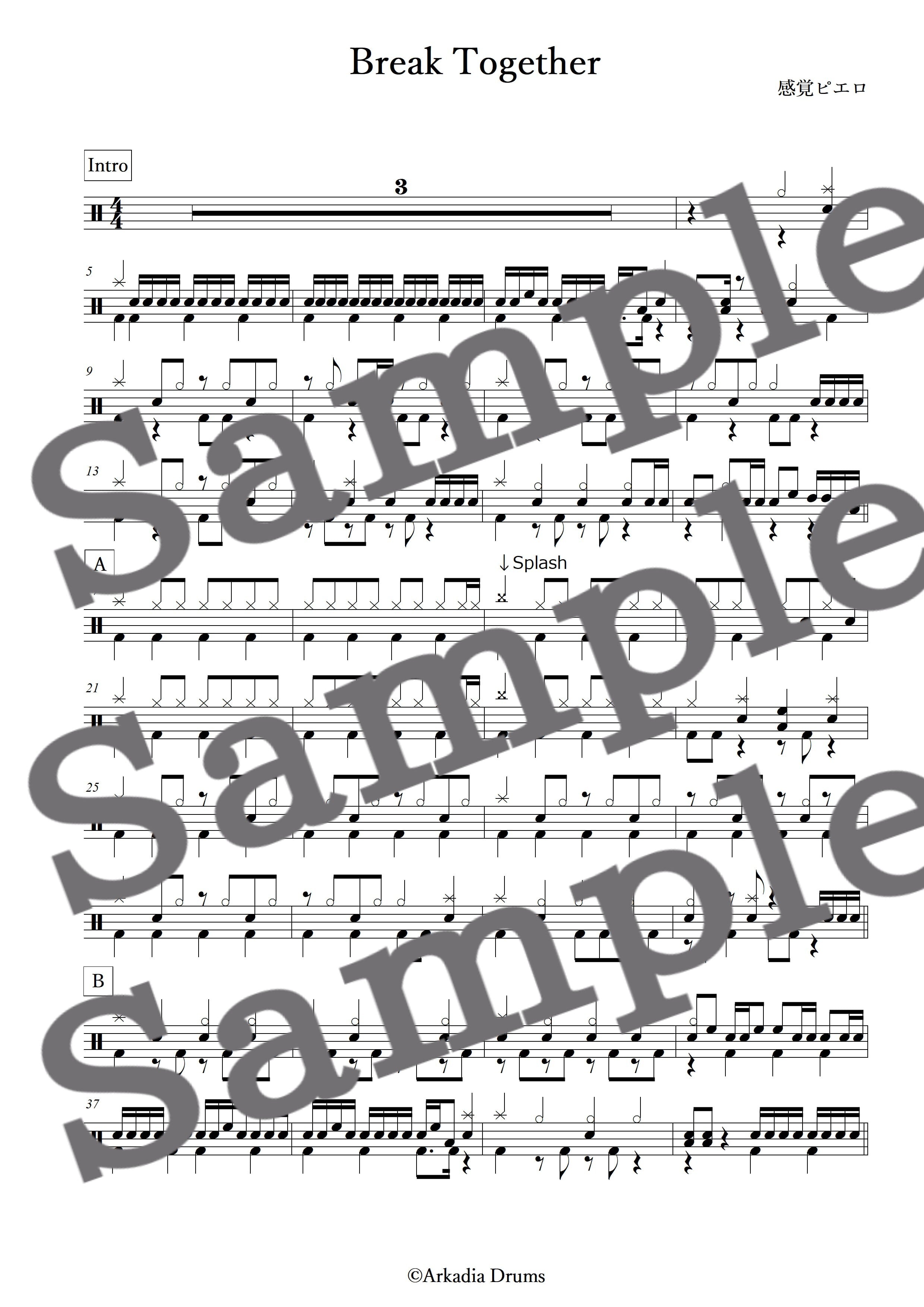 Break Together(感覚ピエロ)のドラム楽譜です。